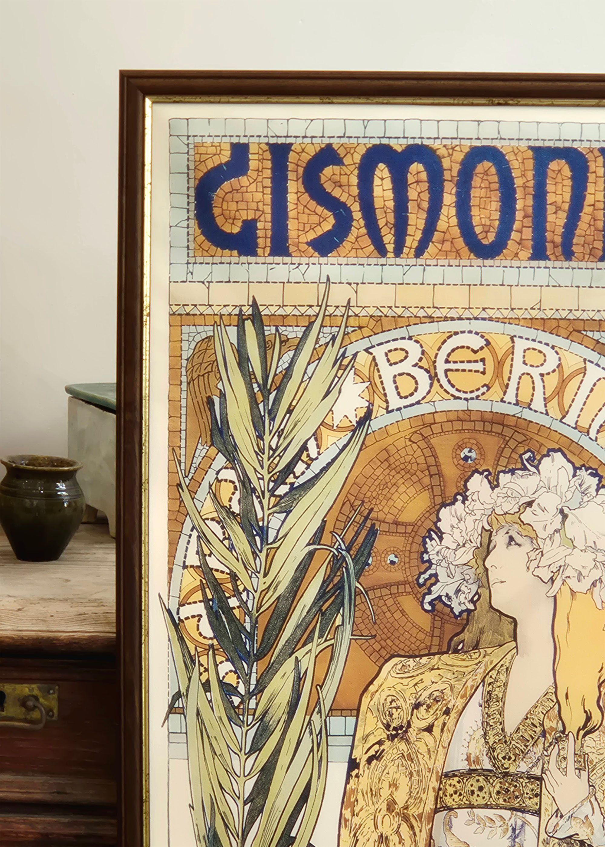 Plakat „Gismonda” to doskonałej jakości print na płótnie wzoru autorstwa Alfonsa Muchy – mistrza czeskiej secesji. Wydrukowany na 100% bawełnianym płótnie i oprawiony w piękną ramę z litego drewna o wymiarach zewnętrznych 48×136 cm. Odporny na blaknięcie do 200 lat.