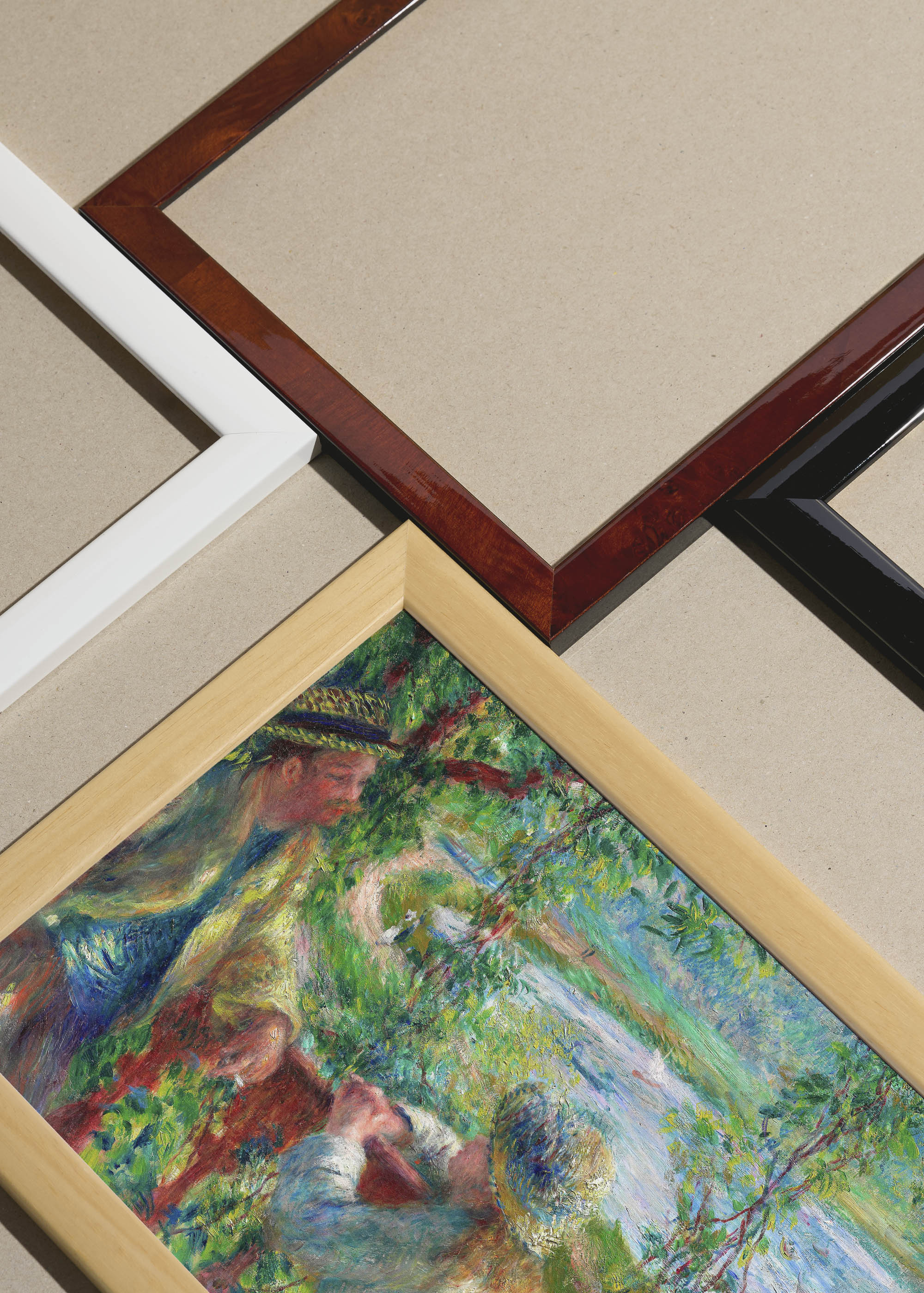 Packshot ramek Plakatello® wykonanych z włoskich i polskich listew ramiarskich. Ramy tworzone ręcznie w pracowni w Lublinie z wykorzystaniem tradycyjnych manualnych narzędzi. Każda rama jest indywidualnie wykańczana i kontrolowana przed wysyłką. Szeroka paleta kolorów pozwala dobrać idealną oprawę do plakatów i obrazów.