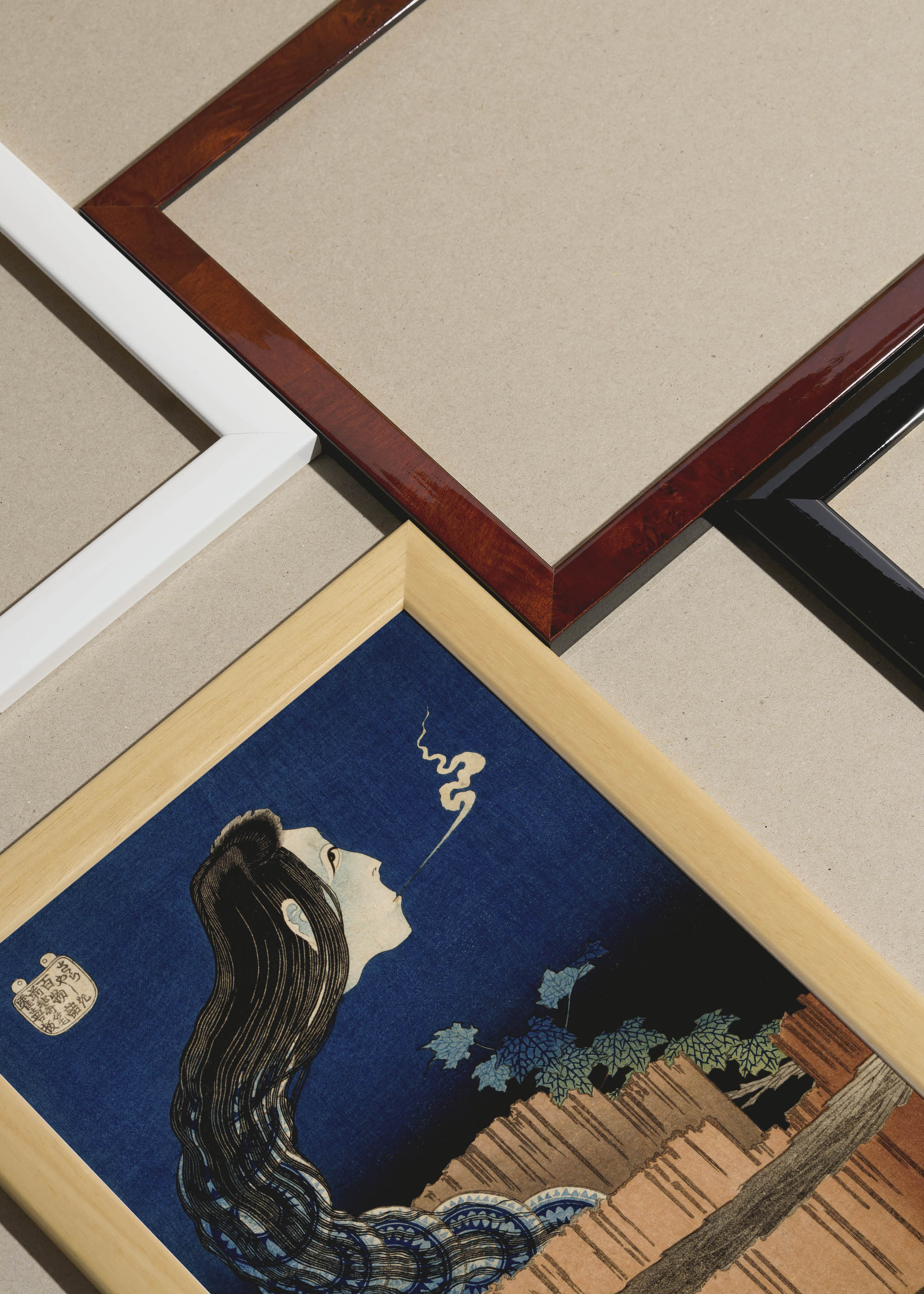Packshot ramek Plakatello® wykonanych z włoskich i polskich listew ramiarskich. Ramy tworzone ręcznie w pracowni w Lublinie z wykorzystaniem tradycyjnych manualnych narzędzi. Każda rama jest indywidualnie wykańczana i kontrolowana przed wysyłką. Szeroka paleta kolorów pozwala dobrać idealną oprawę do plakatów i obrazów.