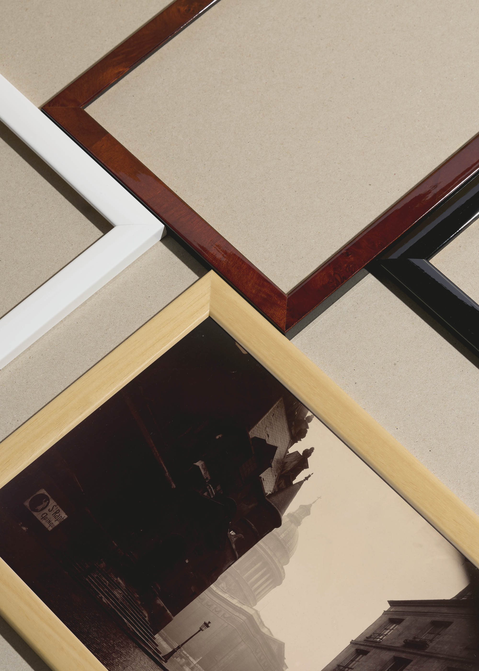 Packshot ramek Plakatello® wykonanych z włoskich i polskich listew ramiarskich. Ramy tworzone ręcznie w pracowni w Lublinie z wykorzystaniem tradycyjnych manualnych narzędzi. Każda rama jest indywidualnie wykańczana i kontrolowana przed wysyłką. Szeroka paleta kolorów pozwala dobrać idealną oprawę do plakatów i obrazów.