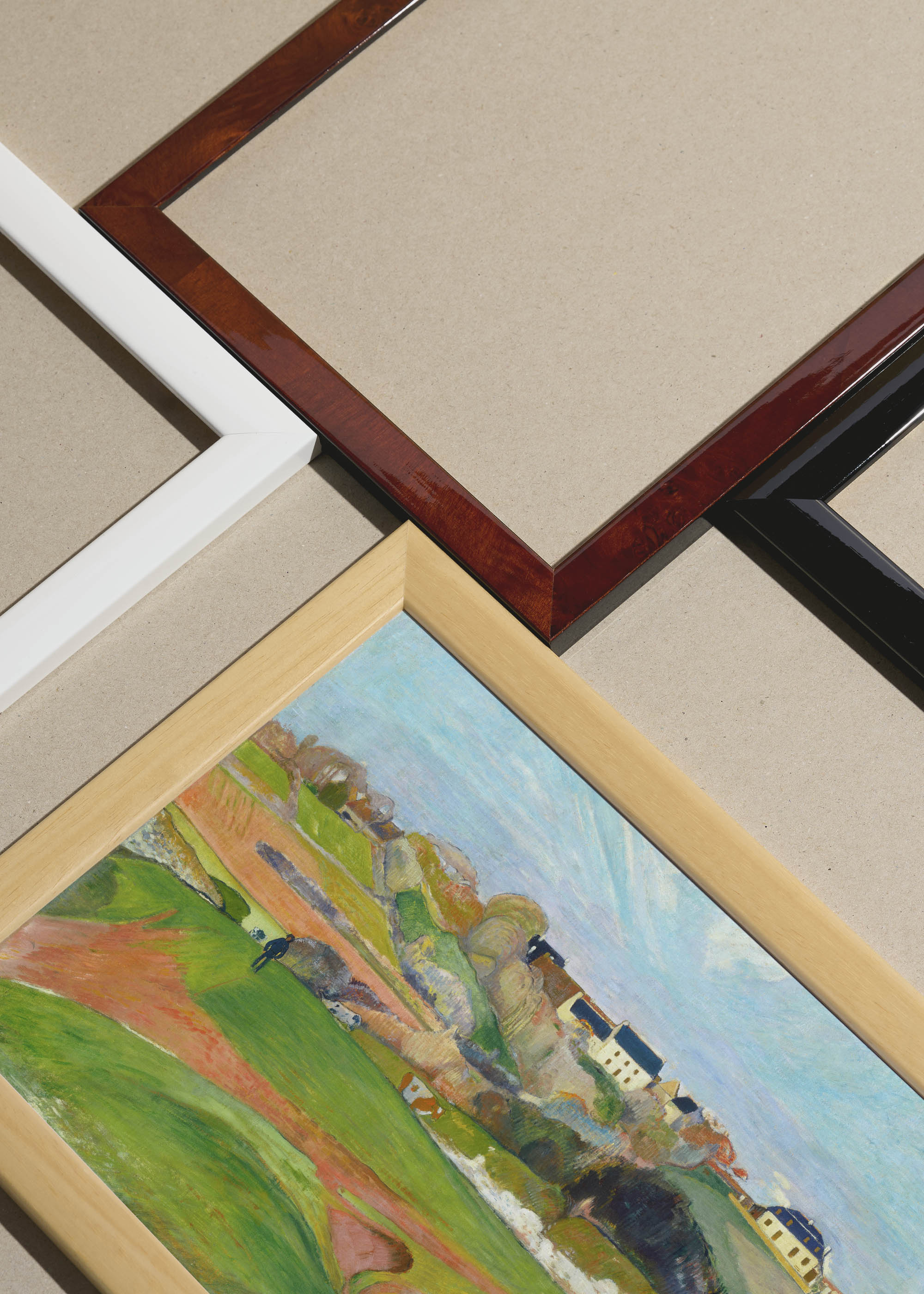 Packshot ramek Plakatello® wykonanych z włoskich i polskich listew ramiarskich. Ramy tworzone ręcznie w pracowni w Lublinie z wykorzystaniem tradycyjnych manualnych narzędzi. Każda rama jest indywidualnie wykańczana i kontrolowana przed wysyłką. Szeroka paleta kolorów pozwala dobrać idealną oprawę do plakatów i obrazów.