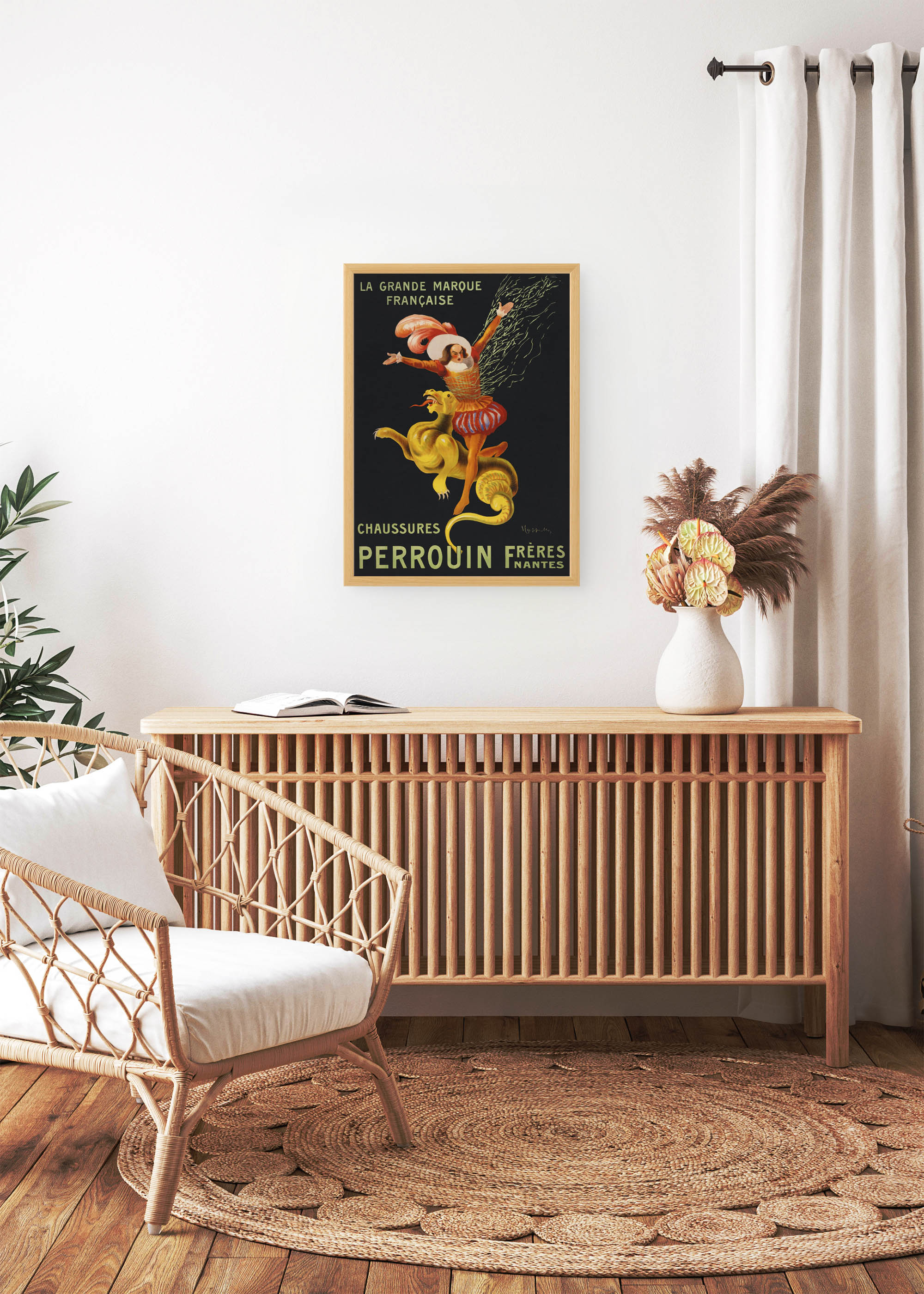 Perrouin Frères to marka obuwia, która dzięki geniuszowi Cappiello zyskała nieśmiertelność w historii sztuki plakatowej. Artysta stworzył postać, która wydaje się unosić ponad ziemią, symbolizując lekkość kroków w butach tej marki – genialny zabieg marketingowy wyprzedzający swoją epokę.