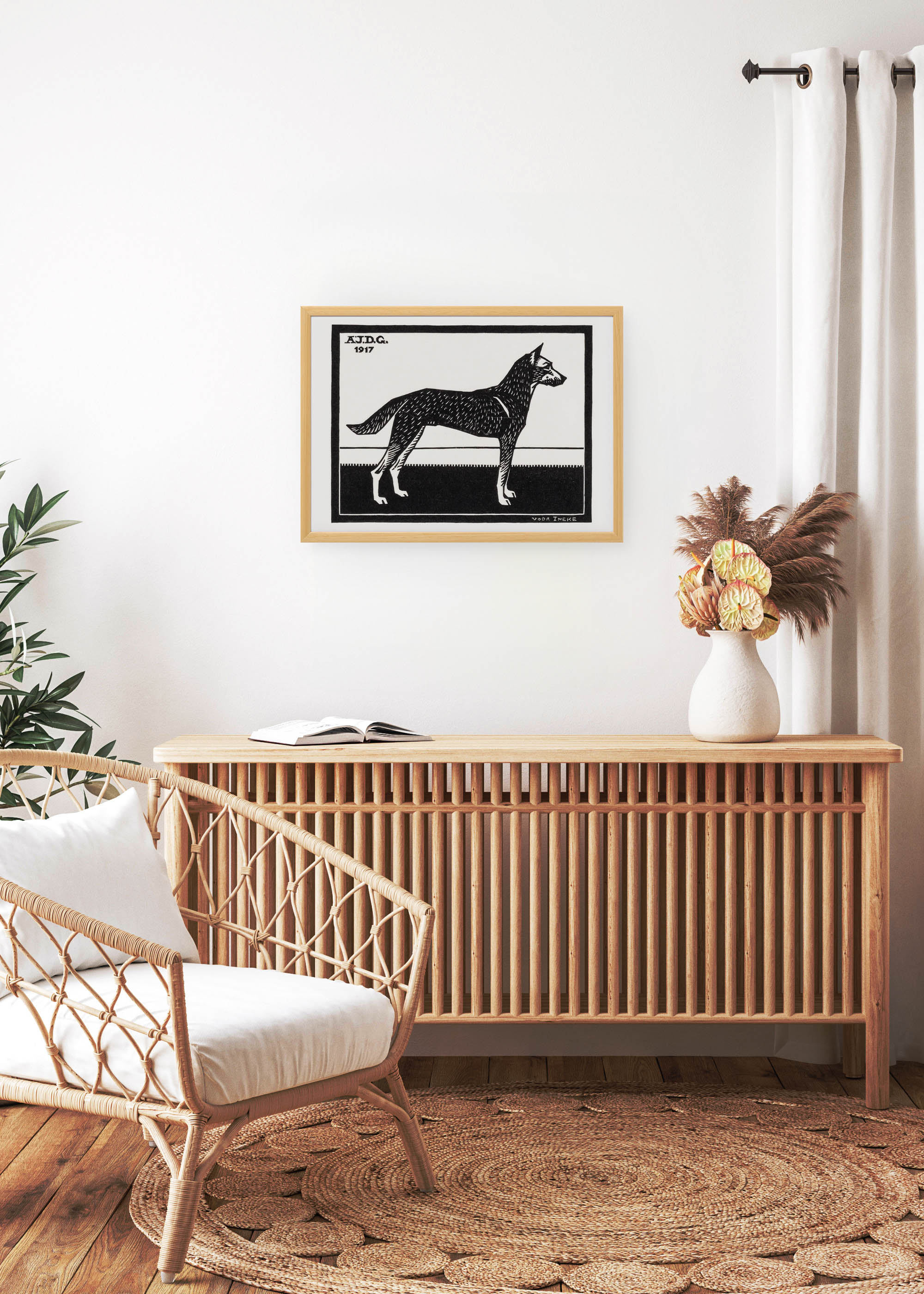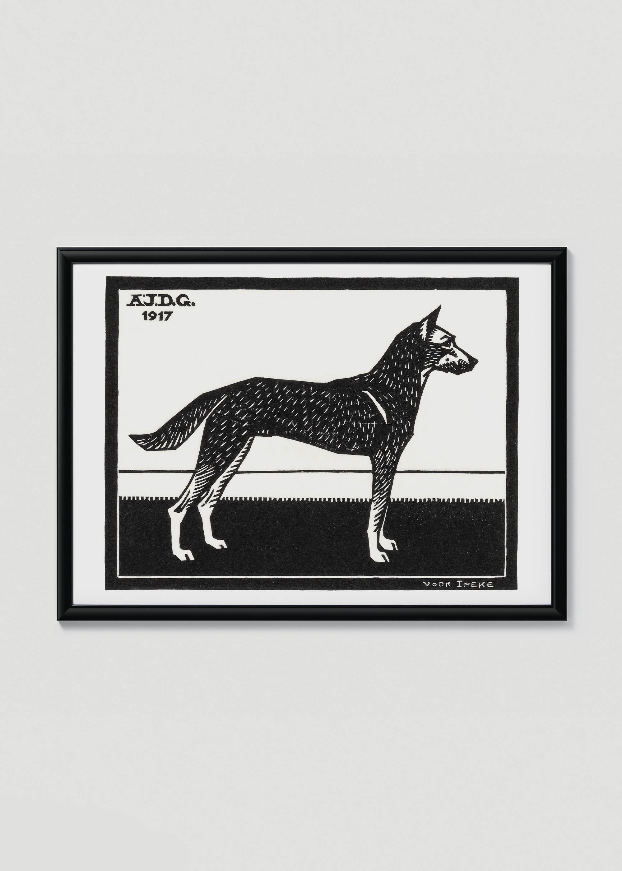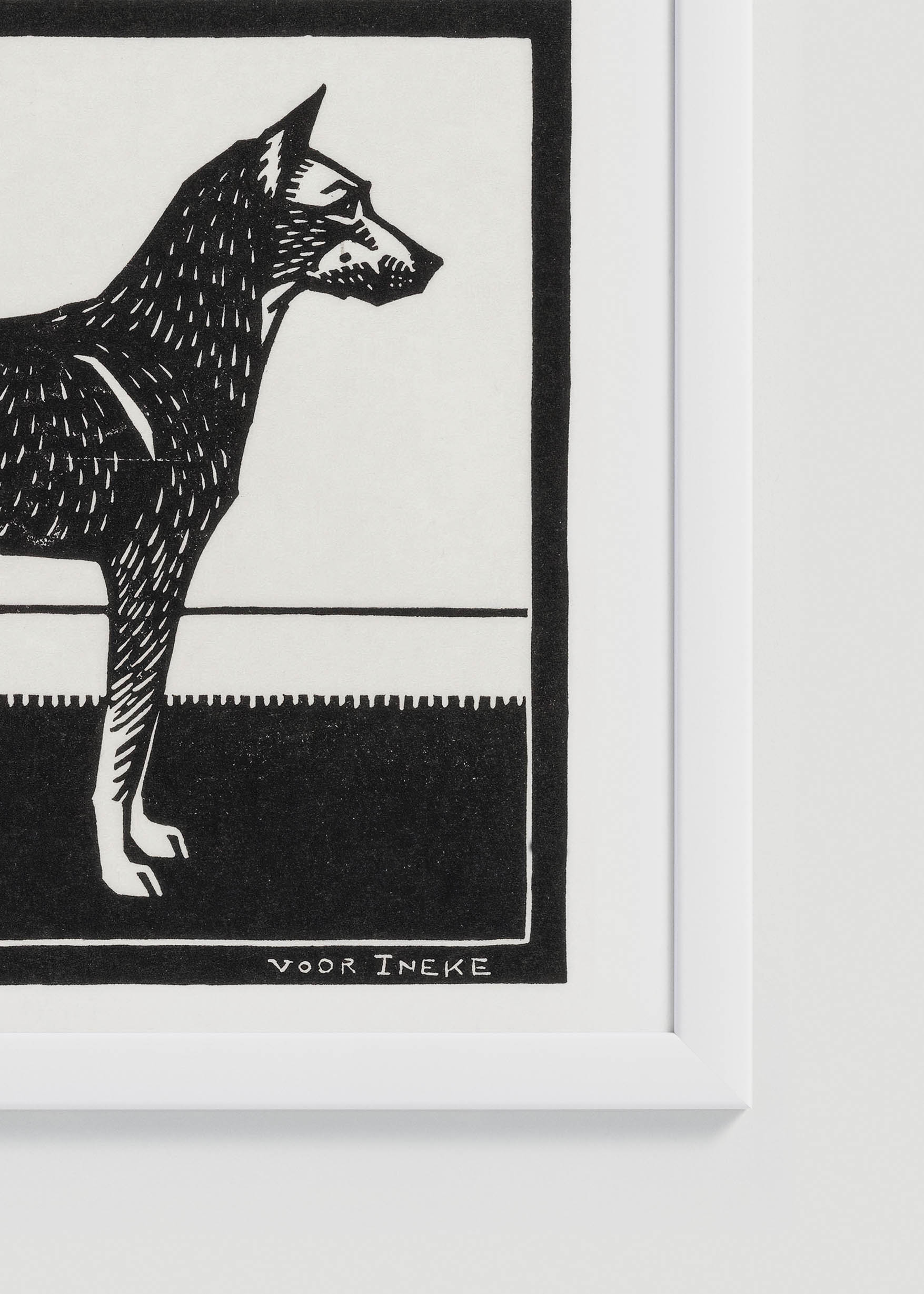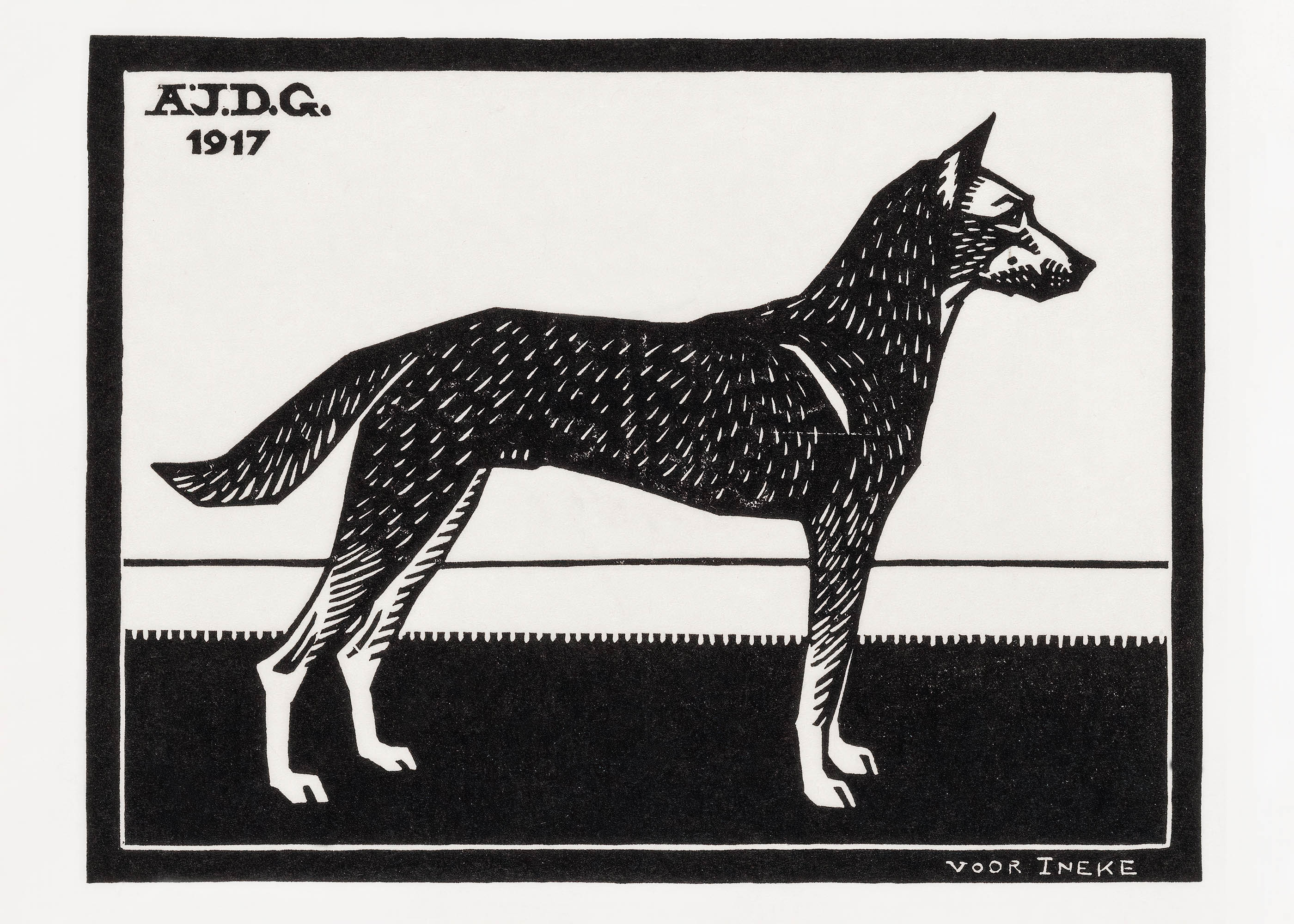 Plakat pies czarno-biały drzeworyt Julie de Graag 1917