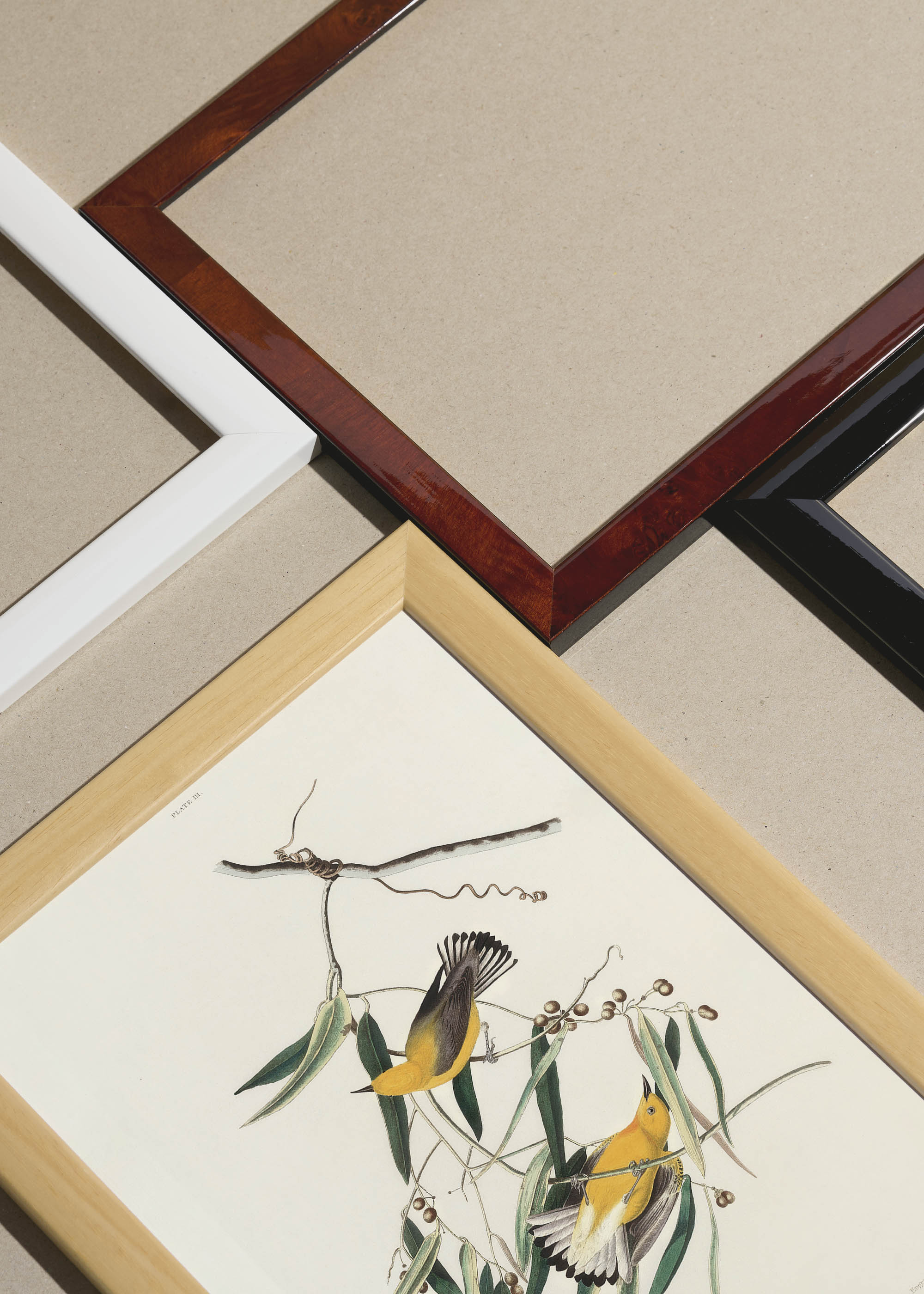 Packshot ramek Plakatello® wykonanych z włoskich i polskich listew ramiarskich. Ramy tworzone ręcznie w pracowni w Lublinie z wykorzystaniem tradycyjnych manualnych narzędzi. Każda rama jest indywidualnie wykańczana i kontrolowana przed wysyłką. Szeroka paleta kolorów pozwala dobrać idealną oprawę do plakatów i obrazów.