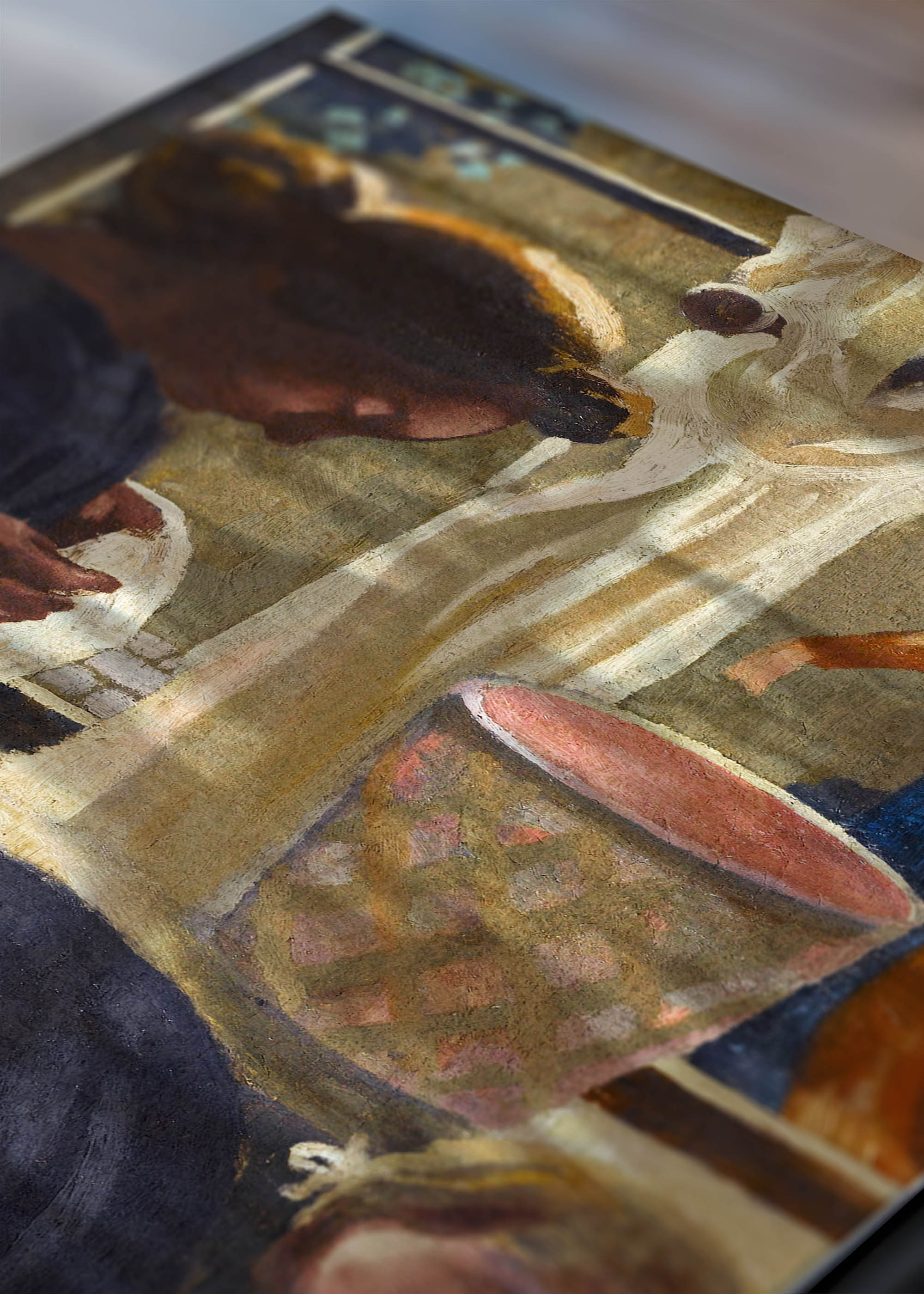 Plakat będący reprintem obrazu Prywatność / Mycie okna Maurice’a Denisa (1870-1943) przenosi nas w intymny świat rodzinnego ciepła przełomu XIX i XX wieku. Denis, jeden z czołowych przedstawicieli nabizmu i symbolizmu, stworzył to dzieło w okresie swojej fascynacji scenami rodzinnymi i religijnymi, kiedy sztuka miała być „dekoracją dla oczu”. Artysta, związany z grupą Les Nabis, wierzył że „obraz przed tym, zanim stanie się koniem wojennym, nagą kobietą czy jakąkolwiek anegdotą – jest przede wszystkim płaską powierzchnią pokrytą kolorami zestawionymi w określonym porządku”.