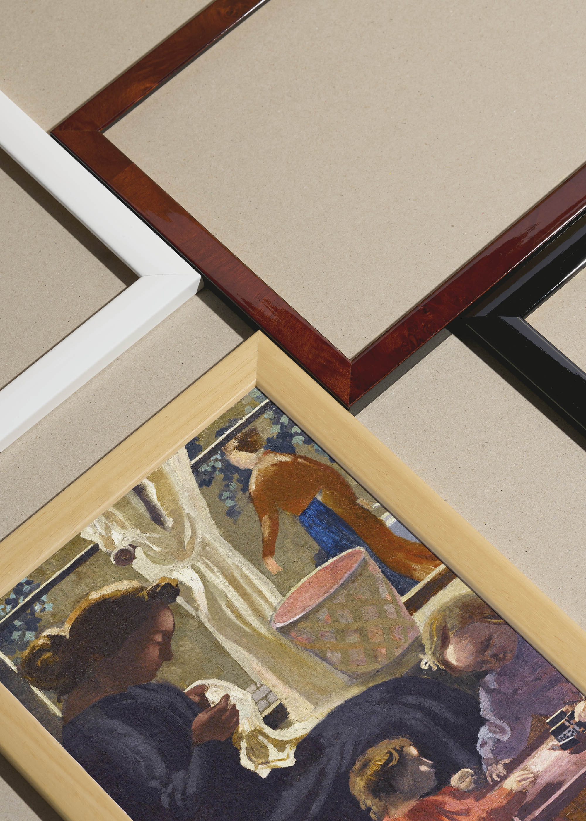 Packshot ramek Plakatello® wykonanych z włoskich i polskich listew ramiarskich. Ramy tworzone ręcznie w pracowni w Lublinie z wykorzystaniem tradycyjnych manualnych narzędzi. Każda rama jest indywidualnie wykańczana i kontrolowana przed wysyłką. Szeroka paleta kolorów pozwala dobrać idealną oprawę do plakatów i obrazów.