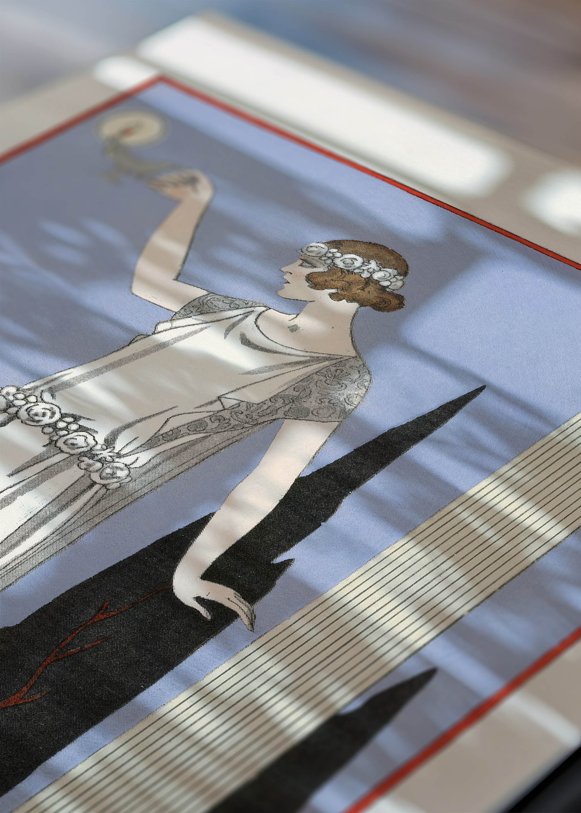 Ten wyjątkowy plakat przedstawia ilustrację George’a Barbiera z 1914 roku, stworzoną dla prestiżowego domu mody Worth. Barbier, uznawany za jednego z najwybitniejszych ilustratorów epoki Art Deco, stworzył to dzieło w okresie swojej największej aktywności twórczej w Paryżu. Artysta zasłynął z ilustracji mody dla najznamienitszych magazynów, takich jak „Gazette du Bon Ton” czy „Vogue”, a jego prace charakteryzowała niezwykła elegancja i dbałość o szczegół.