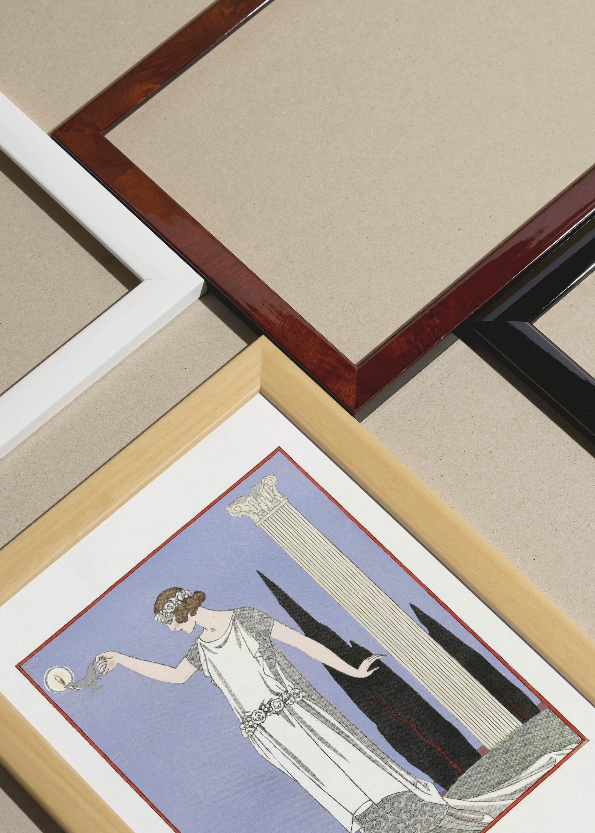 Packshot ramek Plakatello® wykonanych z włoskich i polskich listew ramiarskich. Ramy tworzone ręcznie w pracowni w Lublinie z wykorzystaniem tradycyjnych manualnych narzędzi. Każda rama jest indywidualnie wykańczana i kontrolowana przed wysyłką. Szeroka paleta kolorów pozwala dobrać idealną oprawę do plakatów i obrazów.