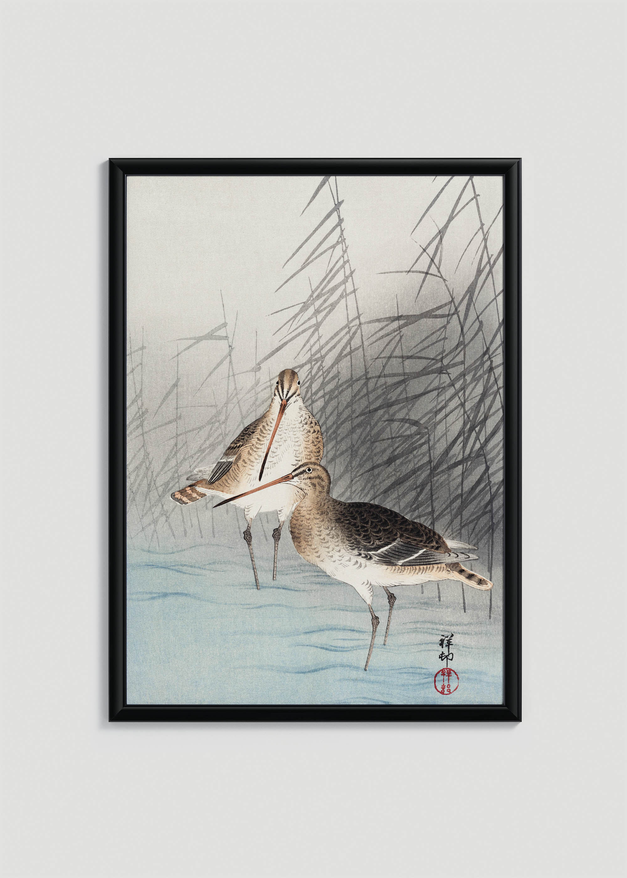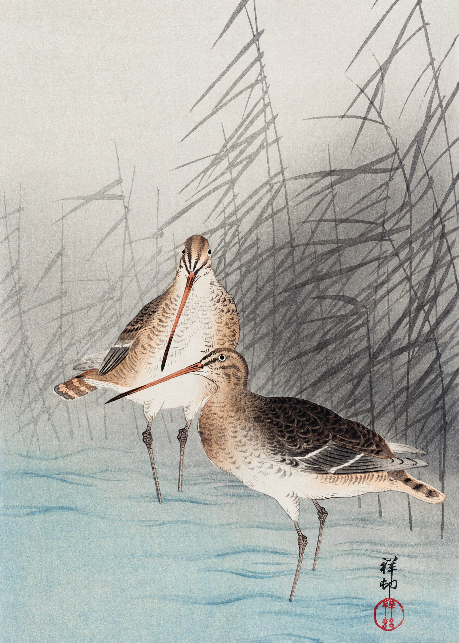 Plakat ptaki bekasy kszyki Ohara Koson japoński drzeworyt vintage