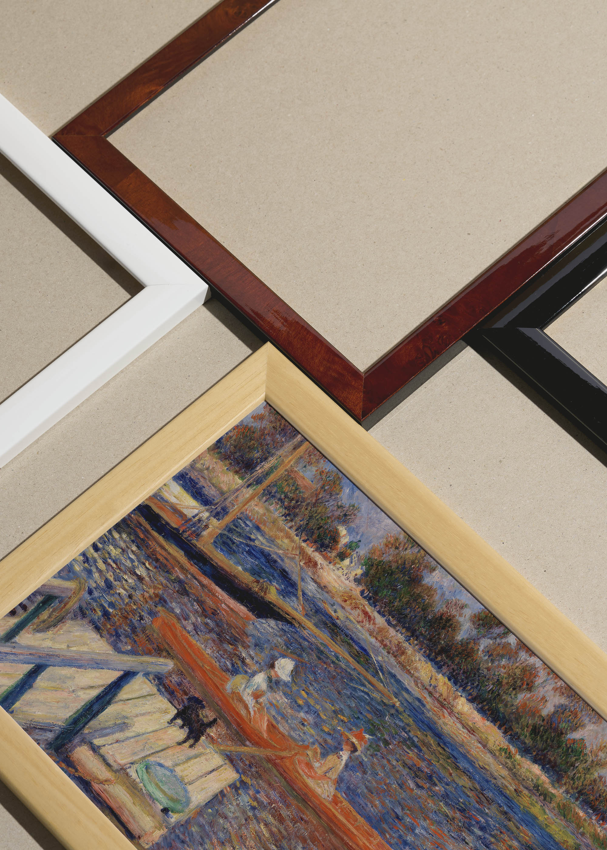 Packshot ramek Plakatello® wykonanych z włoskich i polskich listew ramiarskich. Ramy tworzone ręcznie w pracowni w Lublinie z wykorzystaniem tradycyjnych manualnych narzędzi. Każda rama jest indywidualnie wykańczana i kontrolowana przed wysyłką. Szeroka paleta kolorów pozwala dobrać idealną oprawę do plakatów i obrazów.