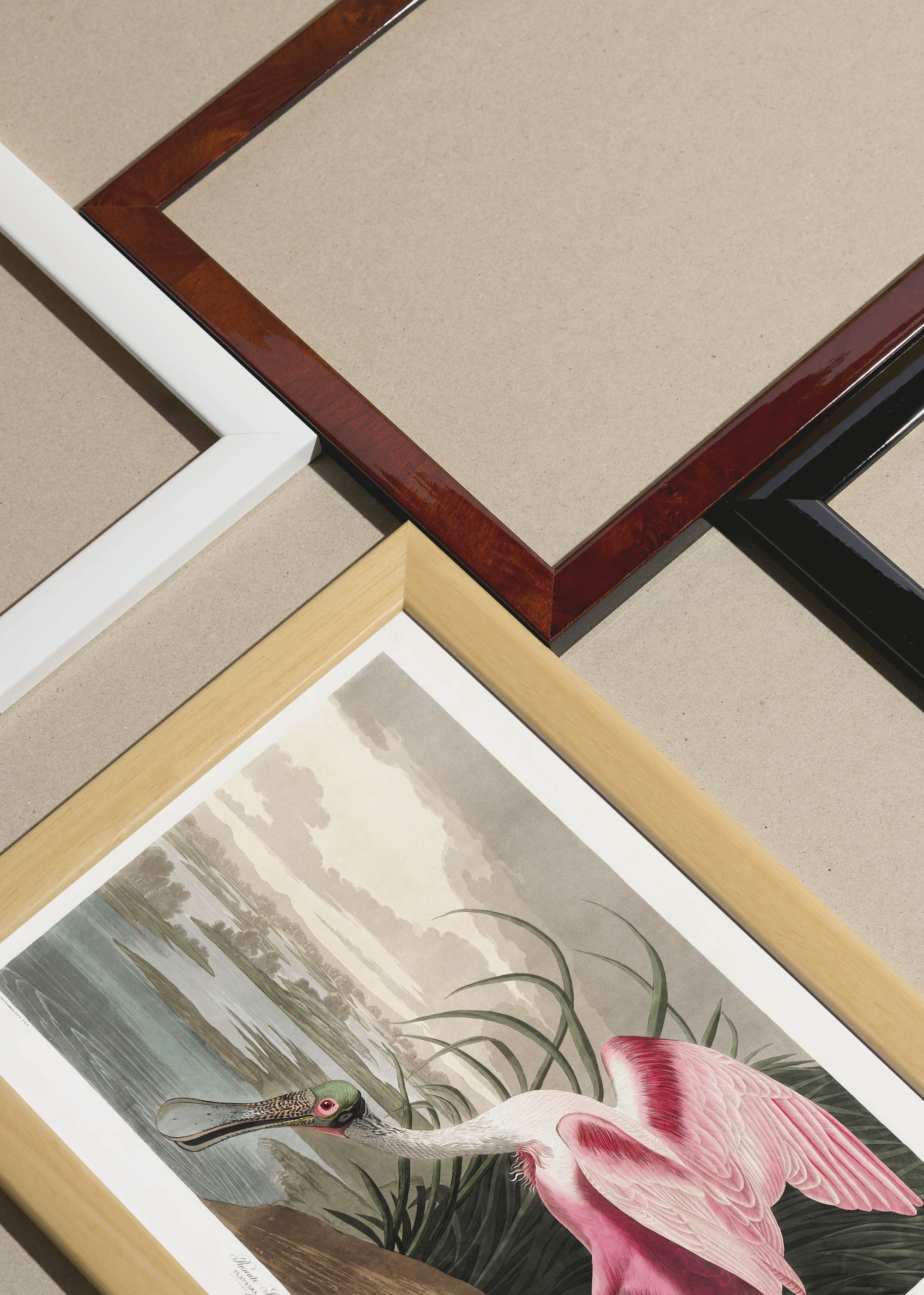 Packshot ramek Plakatello® wykonanych z włoskich i polskich listew ramiarskich. Ramy tworzone ręcznie w pracowni w Lublinie z wykorzystaniem tradycyjnych manualnych narzędzi. Każda rama jest indywidualnie wykańczana i kontrolowana przed wysyłką. Szeroka paleta kolorów pozwala dobrać idealną oprawę do plakatów i obrazów.