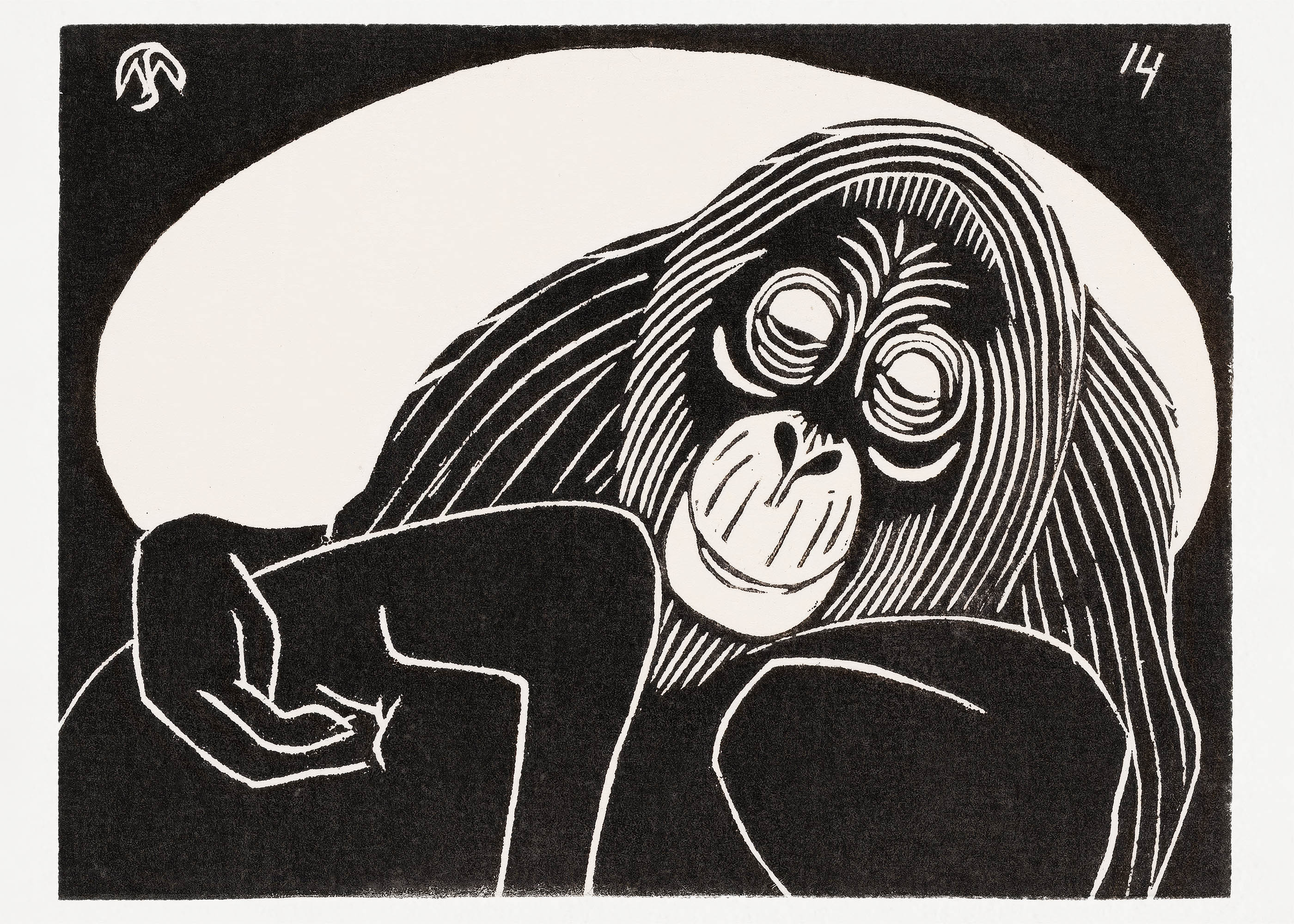 Plakat Samuel Jessurun de Mesquita drzeworyt czarno-biały orangutan