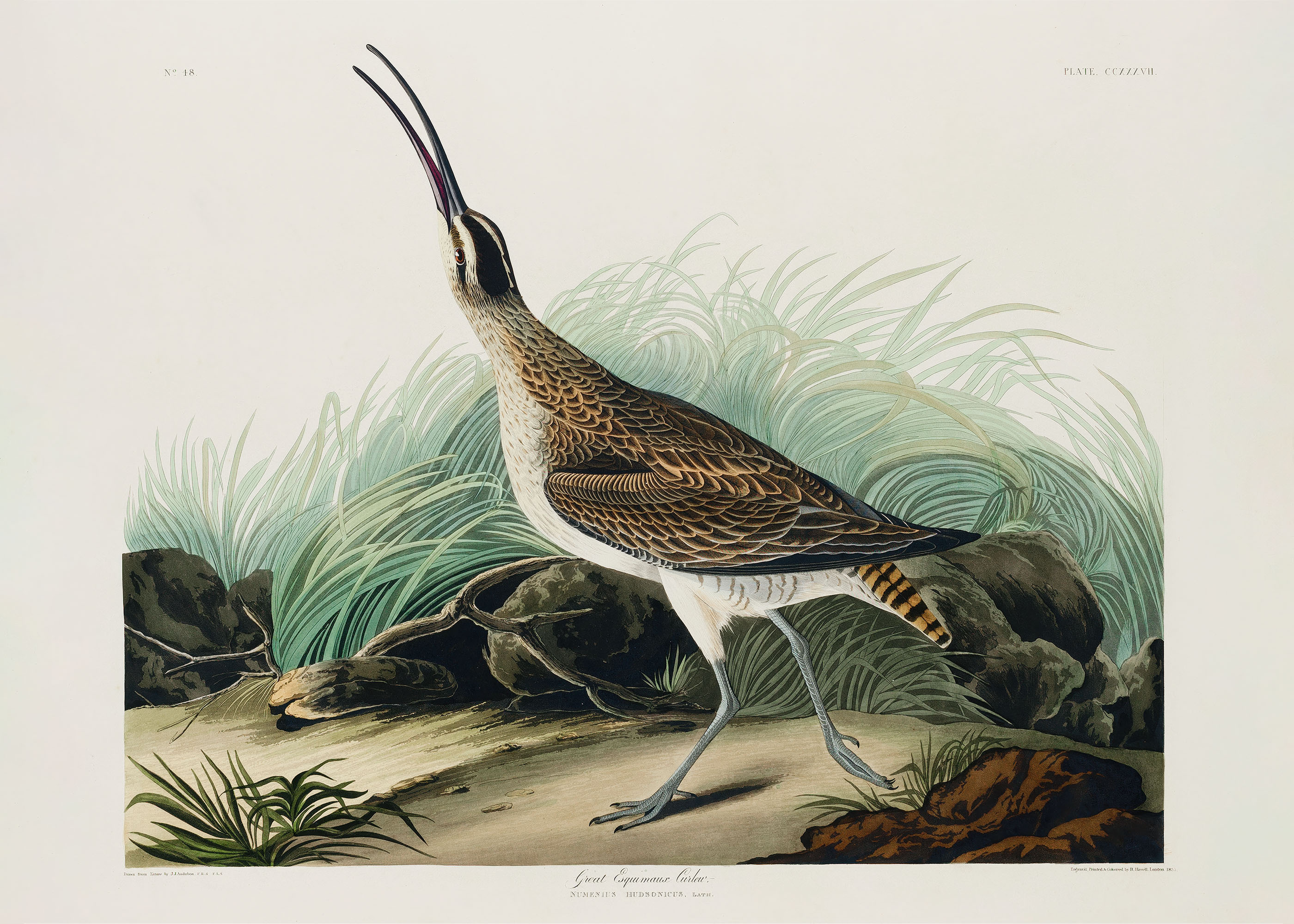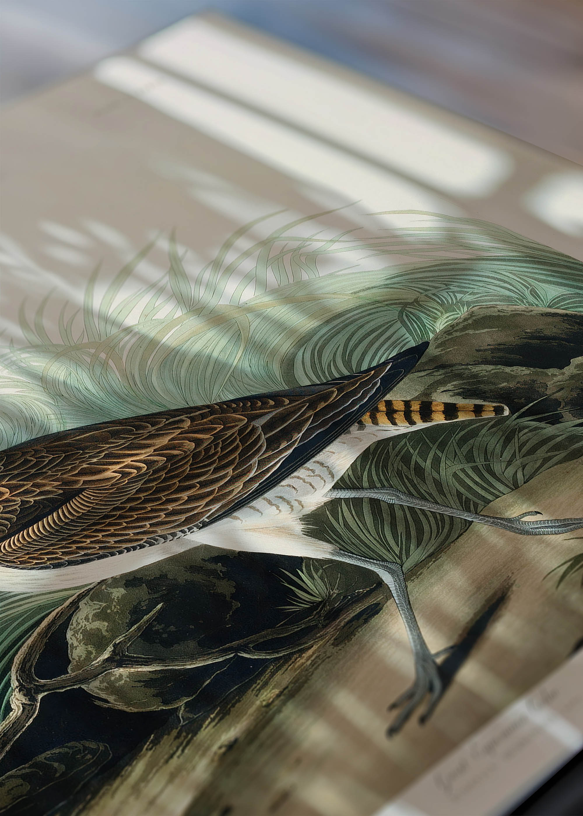 Ten wspaniały plakat przedstawia jedną z najbardziej rozpoznawalnych ilustracji z monumentalnego dzieła „Birds of America” Johna Jamesa Audubona. Amerykański przyrodnik i artysta stworzył tę pracę w latach 1827-1838, dokumentując ptaki Ameryki Północnej w ich naturalnym środowisku. Audubon był pionierem w przedstawianiu ptaków w dynamicznych pozach, odchodząc od sztywnych, muzealnych ujęć swoich poprzedników.