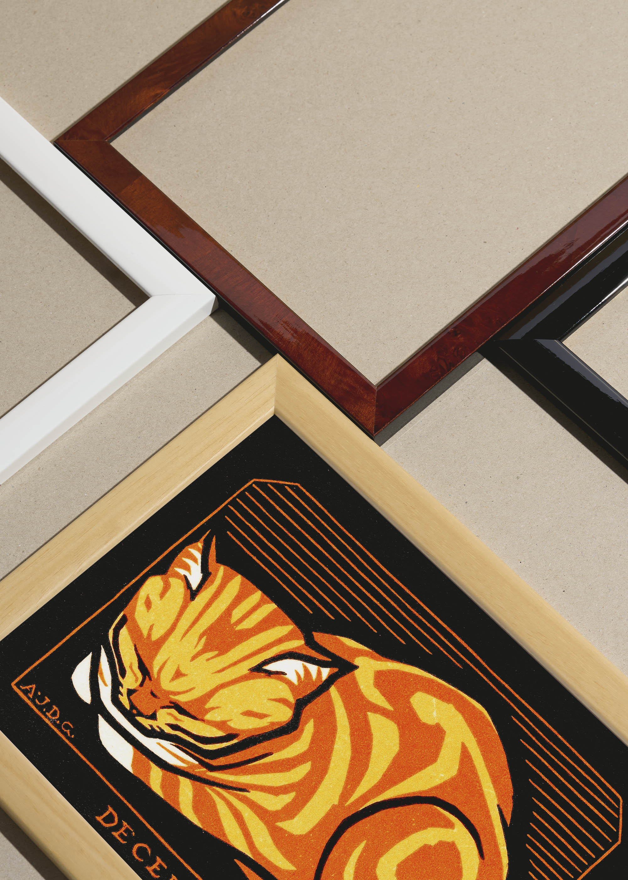 Packshot ramek Plakatello® wykonanych z włoskich i polskich listew ramiarskich. Ramy tworzone ręcznie w pracowni w Lublinie z wykorzystaniem tradycyjnych manualnych narzędzi. Każda rama jest indywidualnie wykańczana i kontrolowana przed wysyłką. Szeroka paleta kolorów pozwala dobrać idealną oprawę do plakatów i obrazów.