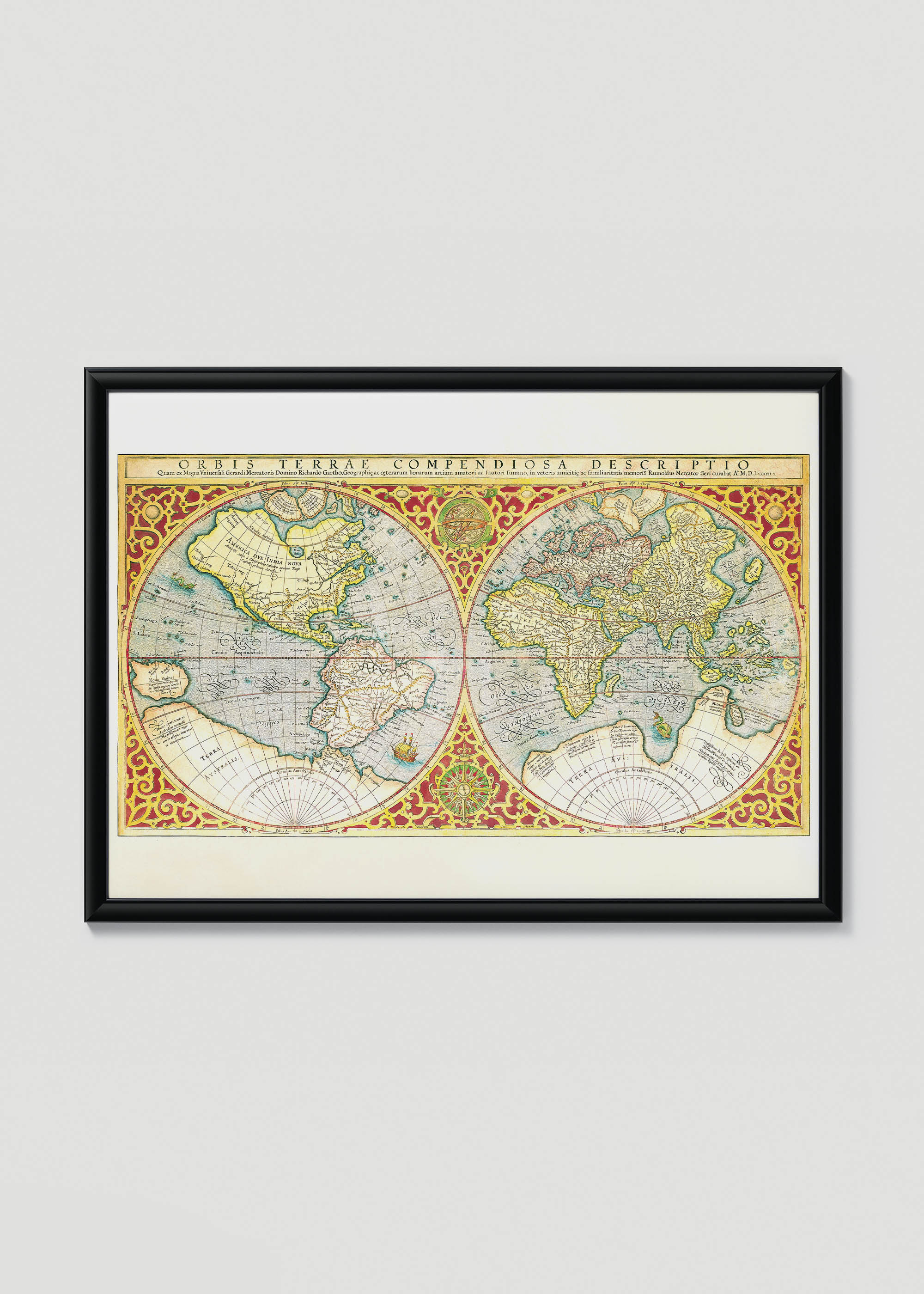 Plakat stara mapa świata XVI wiek 1587 Orbis Terrae Mercator