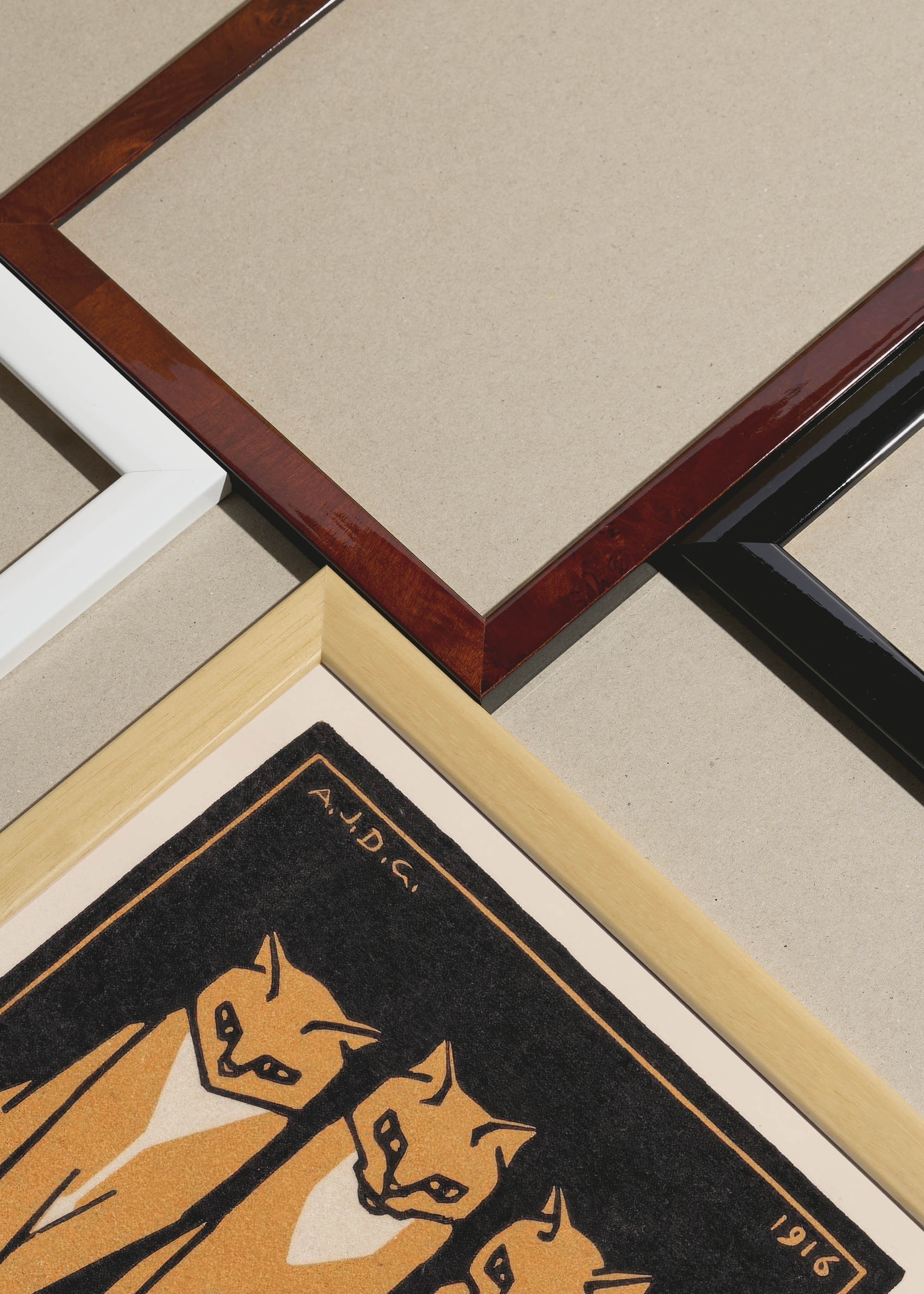 Packshot ramek Plakatello® wykonanych z włoskich i polskich listew ramiarskich. Ramy tworzone ręcznie w pracowni w Lublinie z wykorzystaniem tradycyjnych manualnych narzędzi. Każda rama jest indywidualnie wykańczana i kontrolowana przed wysyłką. Szeroka paleta kolorów pozwala dobrać idealną oprawę do plakatów i obrazów.