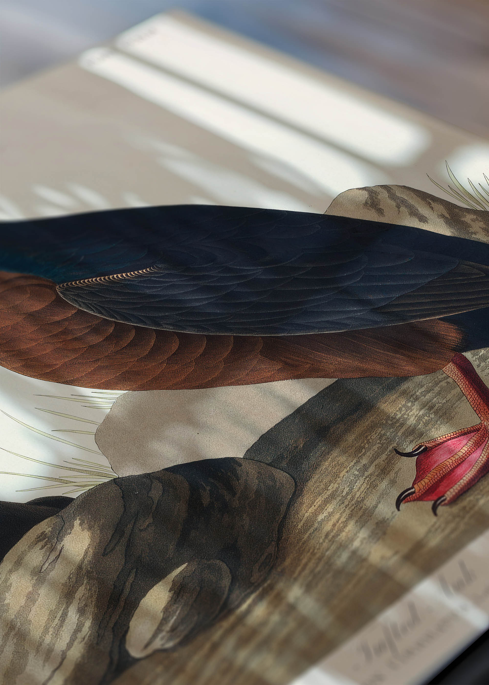 Ten wspaniały plakat przedstawia jedną z najbardziej rozpoznawalnych ilustracji z monumentalnego dzieła „Birds of America” Johna Jamesa Audubona, stworzonego między 1827 a 1838 rokiem. Audubon, francusko-amerykański ornitolog i malarz, poświęcił życie dokumentowaniu ptaków Ameryki Północnej w ich naturalnym środowisku. Jego prace, wykonane techniką akwaforty kolorowanej ręcznie, do dziś zachwycają niezwykłą precyzją anatomiczną i artystycznym kunsztem.