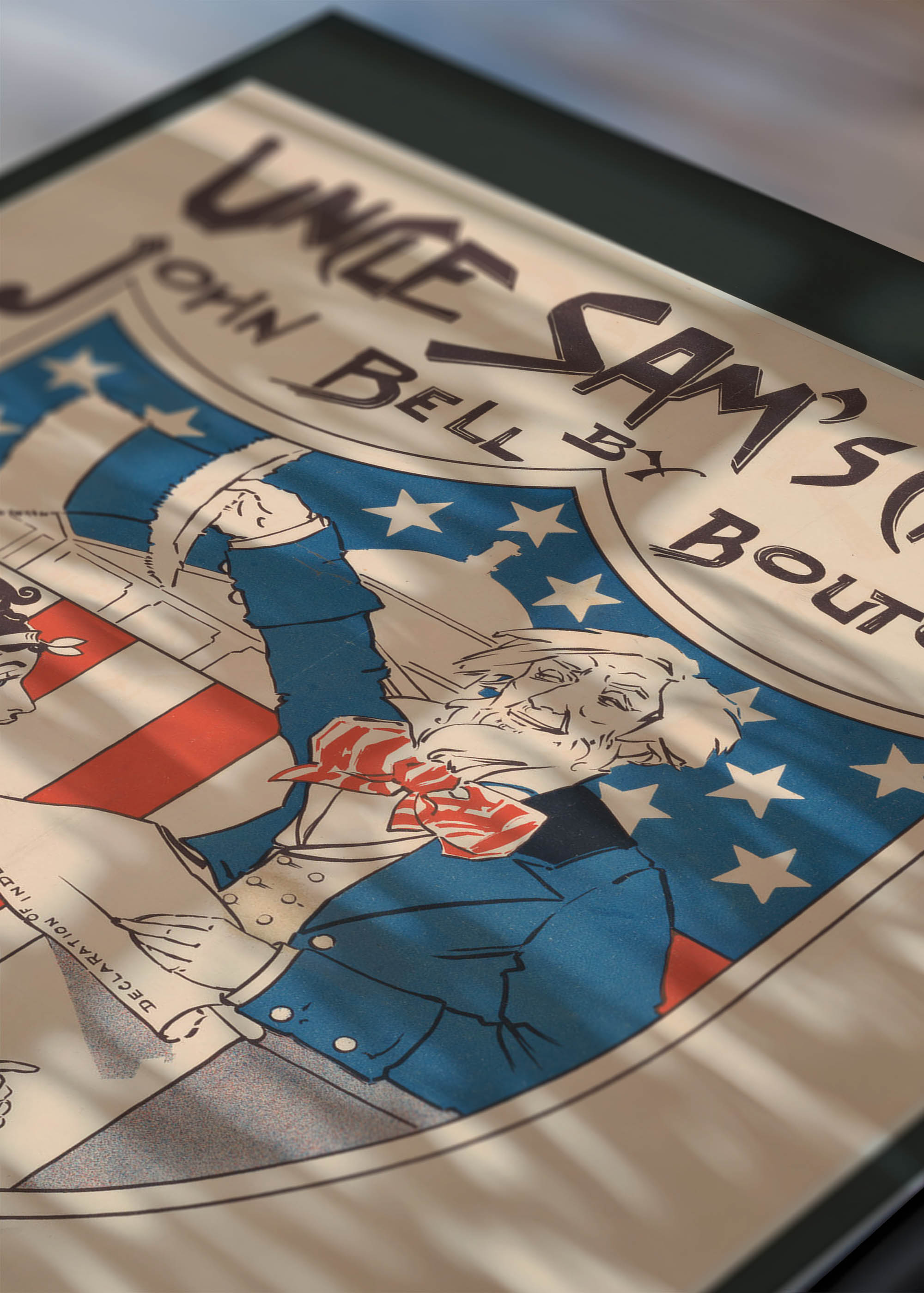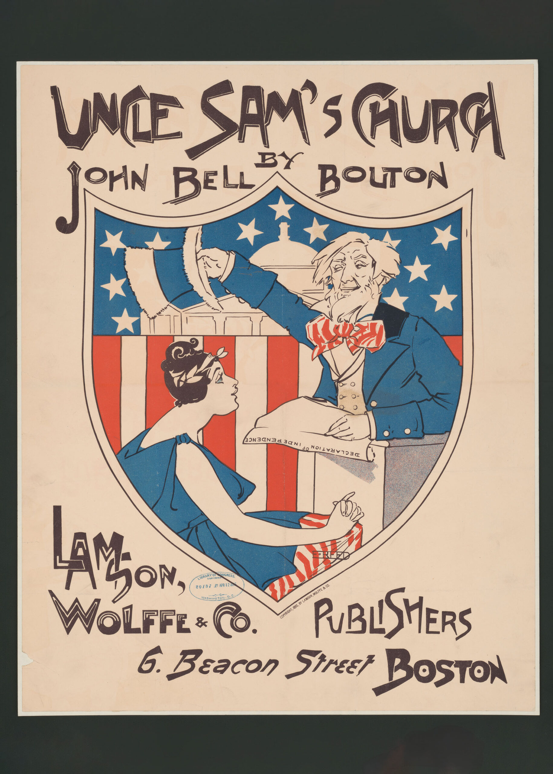 Plakat jest naszym przedrukiem wzoru „Uncle Sam’s Church” autorstwa Ethel Reed. To prawdziwa perła amerykańskiej sztuki plakatowej z końca XIX wieku. Powstały około 1895 roku w Bostonie projekt był reklamą książki autorstwa Johna Bella Boltona, wydanej przez prestiżowe wydawnictwo Lamson, Wolffe & Co. Reed, pionierka grafiki użytkowej i jedna z pierwszych kobiet-projektantek w Ameryce, stworzyła kompozycję, która łączy patriotyczne symbole z subtelną ironią społeczną.