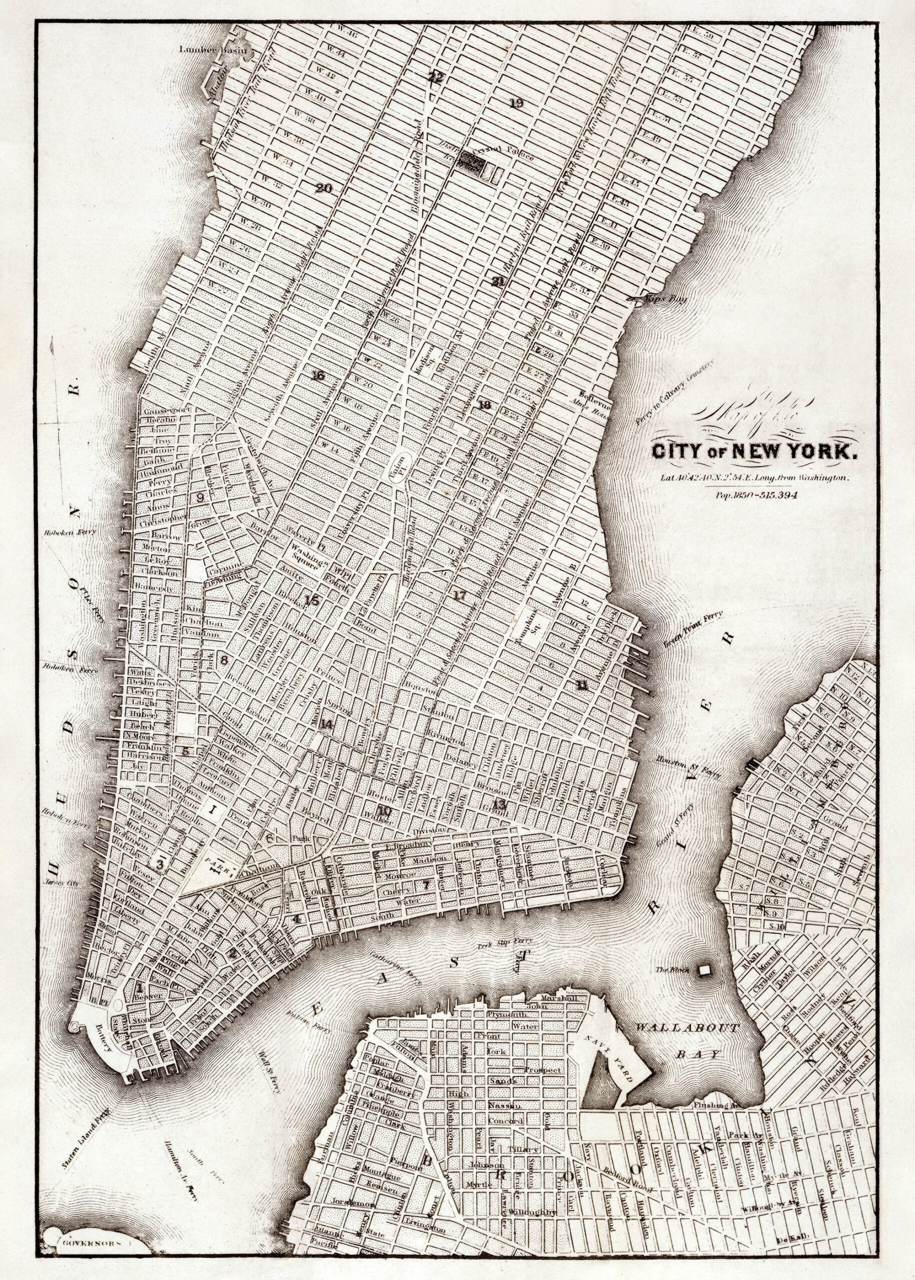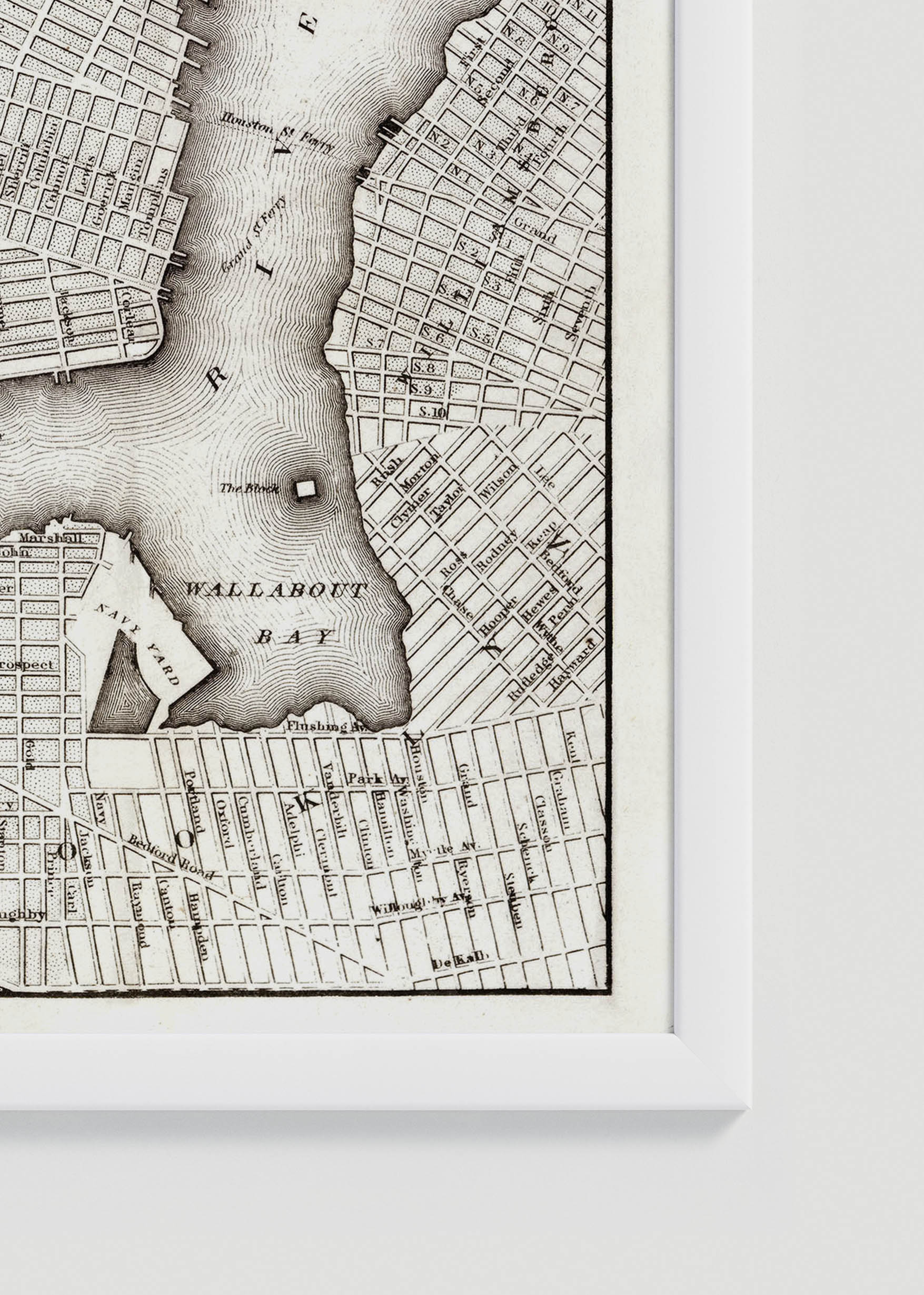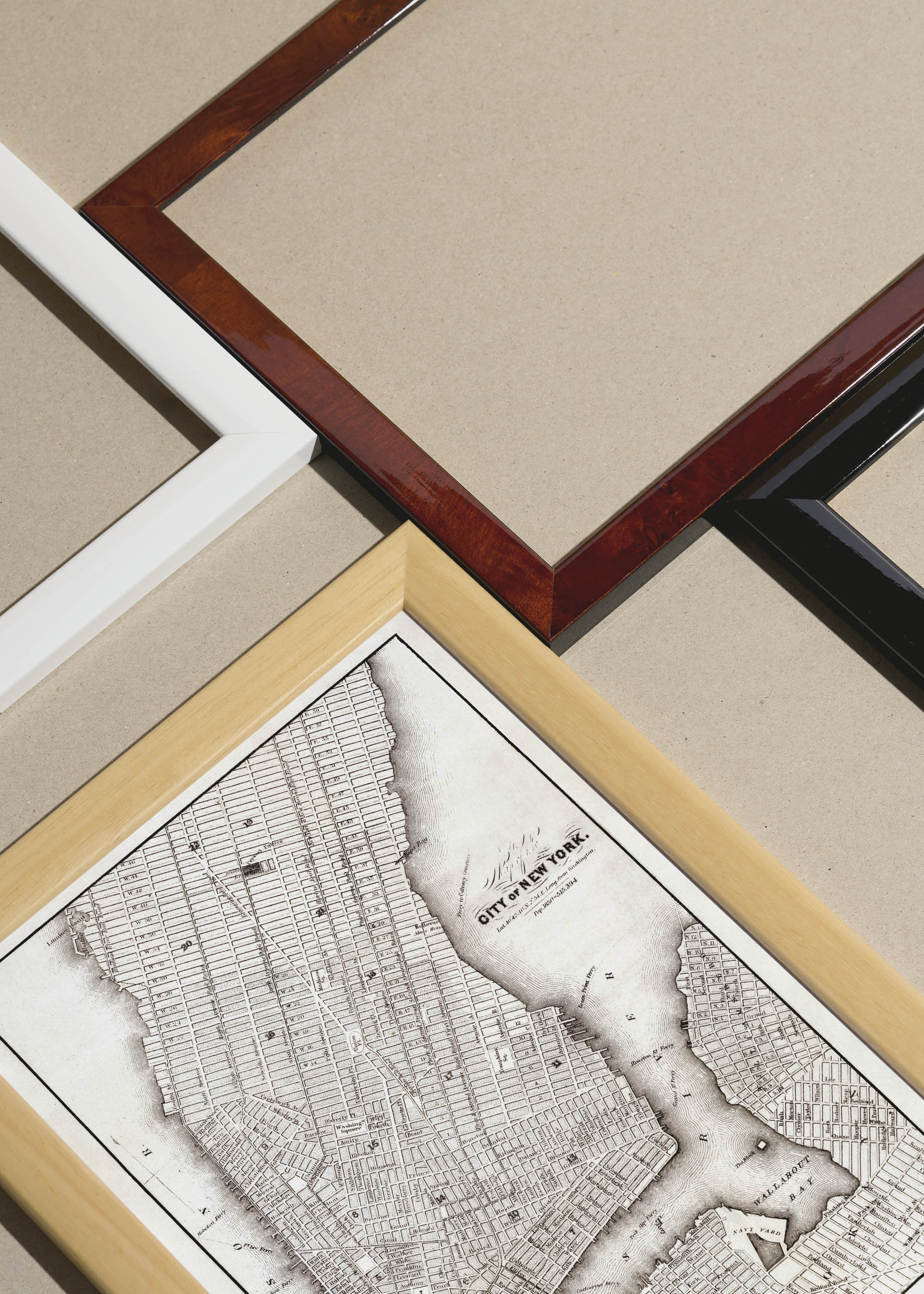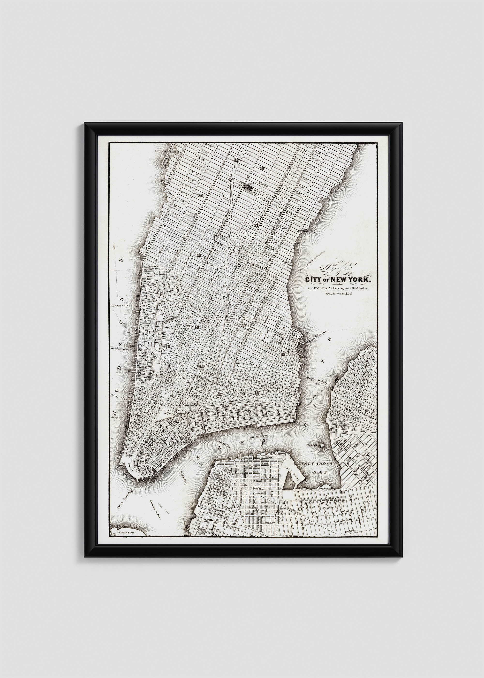 Plakat przedstawiający historyczną mapę Nowego Jorku z połowy XIX wieku to prawdziwa perła kartografii miejskiej, która przenosi nas do czasów dynamicznego rozwoju Manhattanu. Ten fascynujący monochromatyczny reprint pochodzi prawdopodobnie z okresu 1850-1860, gdy miasto przeżywało bezprecedensowy boom demograficzny i urbanistyczny, przekształcając się z kolonialnego portu w tętniącą życiem metropolię.