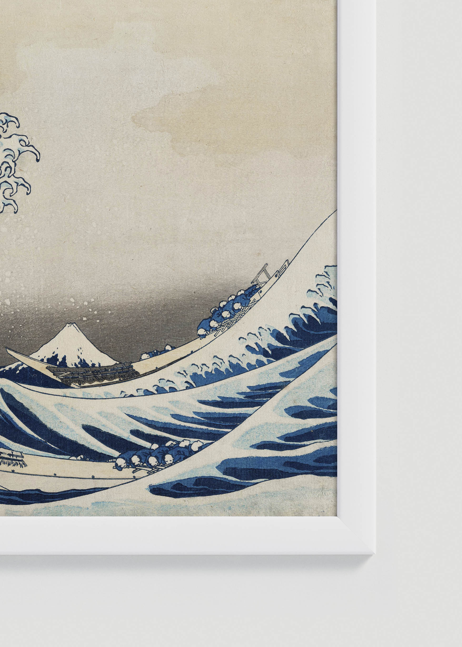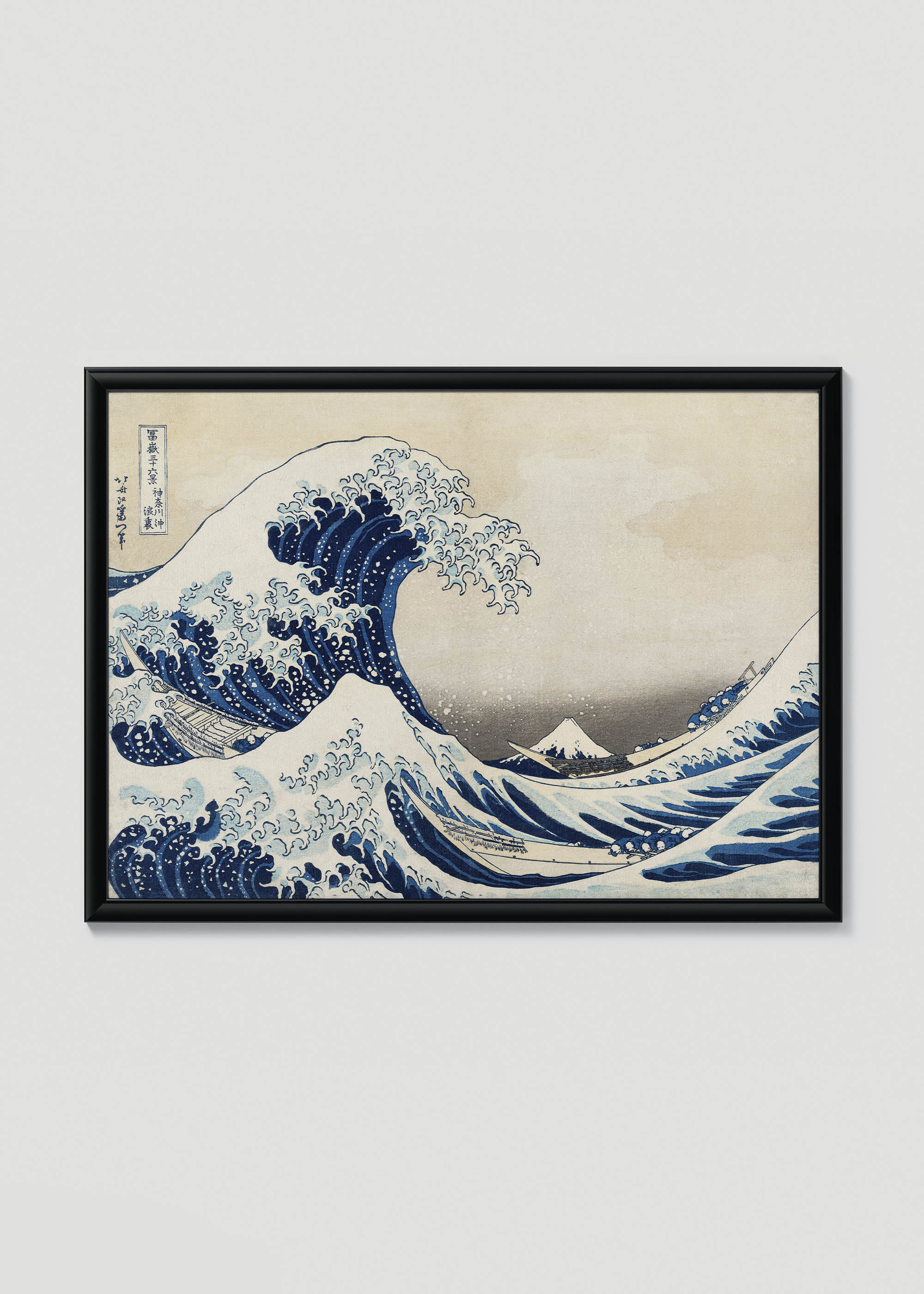 Plakat przedstawiający słynne dzieło Wielka Fala w Kanagawie to reprint najsławniejszego drzeworytu Katsushika Hokusai, pochodzącego z cyklu „36 widoków na górę Fuji” z lat 1831-1833. Ten japoński mistrz ukiyo-e stworzył ikonę światowego malarstwa, która do dziś fascynuje swoją dynamiką i perfekcyjną kompozycją. Ciekawostką jest, że Hokusai miał już ponad 70 lat, gdy tworzył to arcydzieło, a sam uważał, że dopiero w tym wieku zaczął naprawdę rozumieć sztukę.