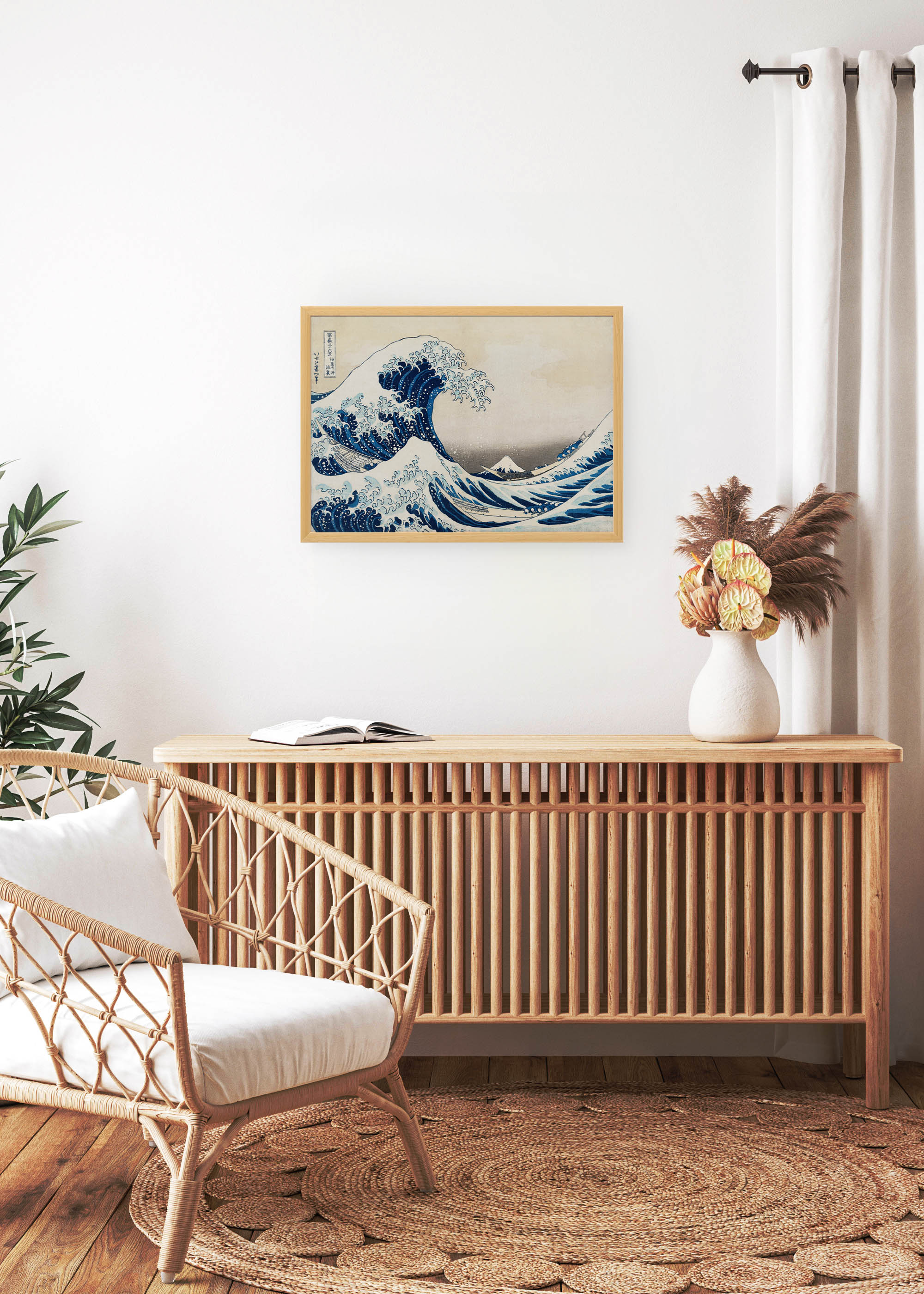 Ten plakat będący reprintem wzoru autorstwa Hokusaia idealnie komponuje się w minimalistycznych wnętrzach w stylu japandi czy skandynawskim. Doskonale sprawdzi się również w przestrzeniach industrialnych, gdzie surowe faktury podkreślą delikatność japońskiego drzeworytu. W kolekcji Plakatello to pozycja obowiązkowa dla miłośników sztuki orientalnej i ponadczasowego designu. Wzór świetnie współgra z naturalnymi materiałami – drewnem, lnem czy jutą, tworząc spokojną, kontemplacyjną atmosferę.