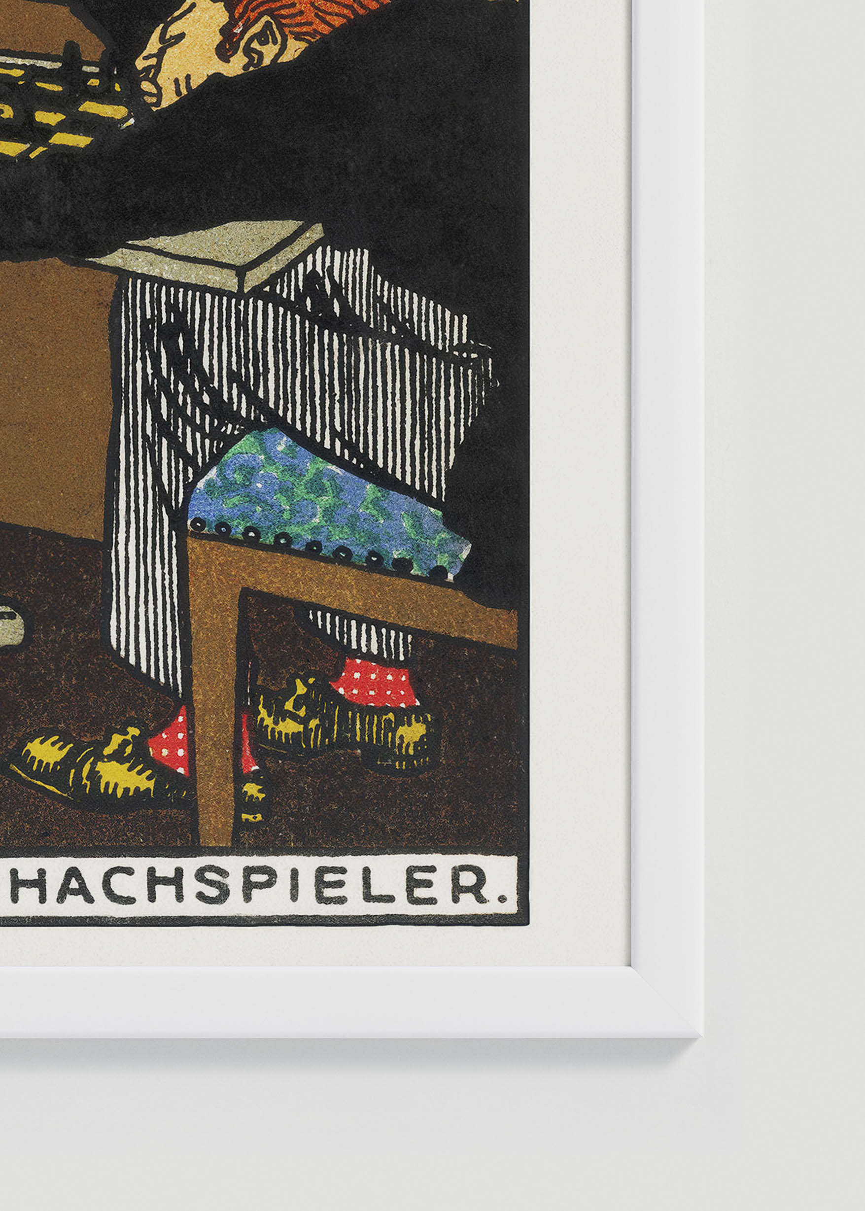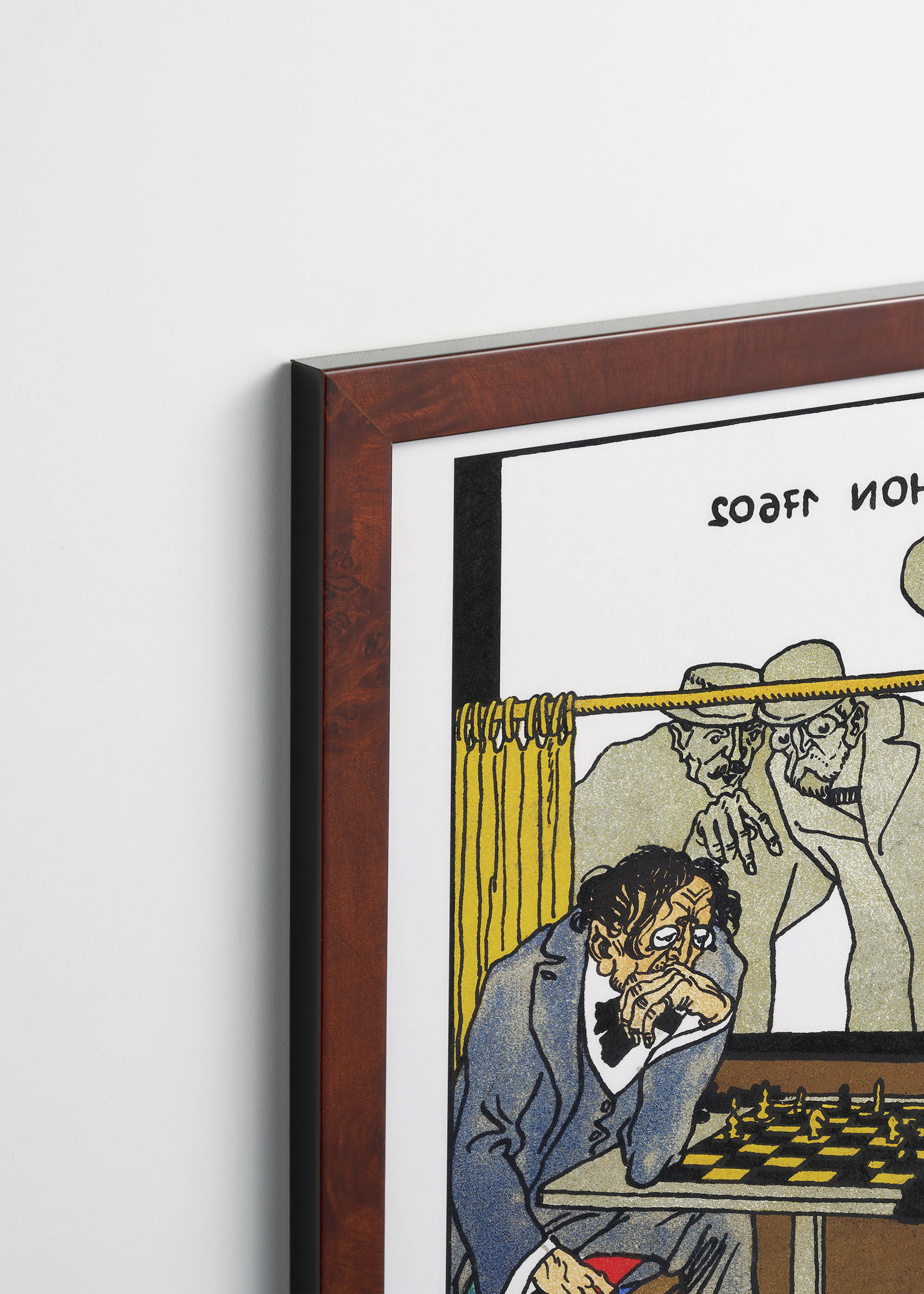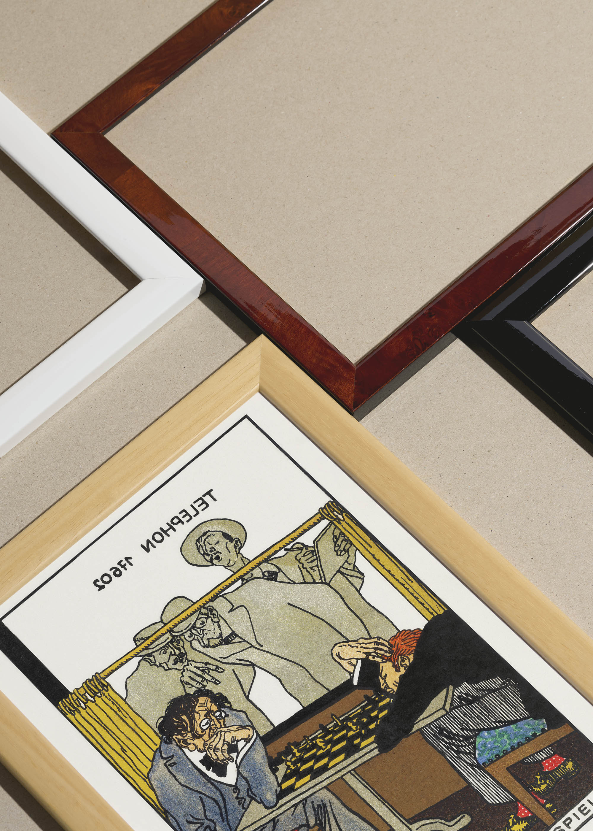 Plakat przedstawiający dzieło „Wiener Cafe: Die Schachspieler” (Wiedeńska kawiarnia: Szachiści) to niezwykle charakterystyczna reprodukcja pracy Moriza Junga, austriackiego grafika i ilustratora działającego na przełomie XIX i XX wieku. Jung, związany z wiedeńską secesją, stworzył ten projekt około 1911 roku, uwieczniając atmosferę słynnych wiedeńskich kawiarni, które w tamtym okresie były prawdziwymi centrami życia intelektualnego i artystycznego monarchii austro-węgierskiej.