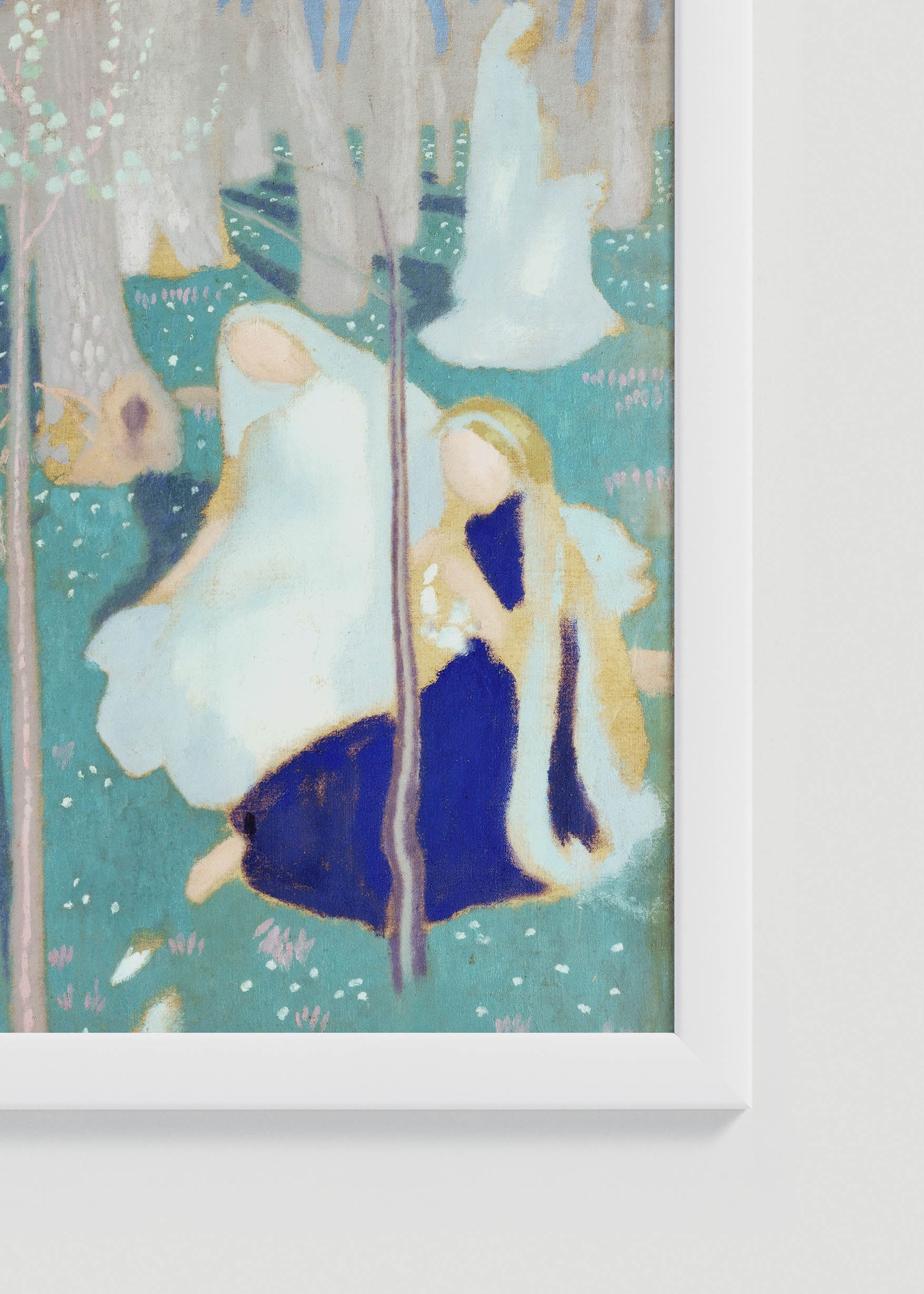 Ten zjawiskowy plakat przedstawia obraz Wiosna autorstwa Maurice’a Denisa (1870-1943), jednego z najważniejszych przedstawicieli francuskich nabitów i prekursora symbolizmu. Denis, członek grupy Les Nabis, tworzył na przełomie XIX i XX wieku, kiedy sztuka przechodziła rewolucyjne przemiany – od impresjonizmu ku nowym formom ekspresji artystycznej. Artysta słynął z manifestu głoszącego, że „obraz to przede wszystkim płaska powierzchnia pokryta kolorami ułożonymi w określonym porządku”.
